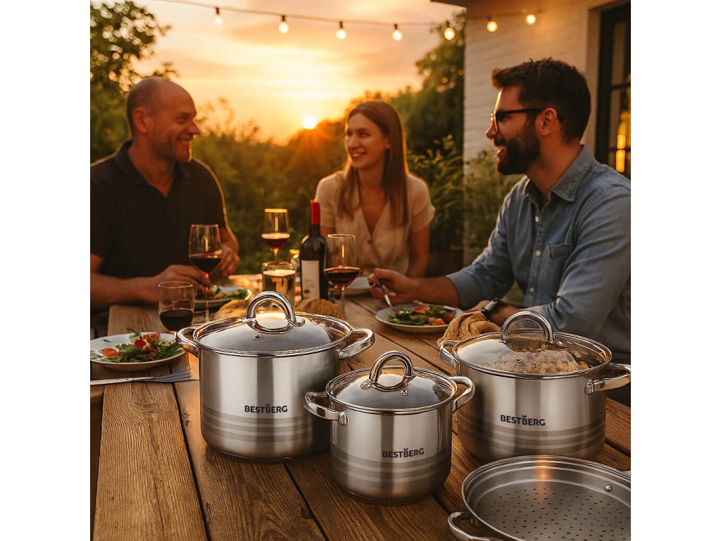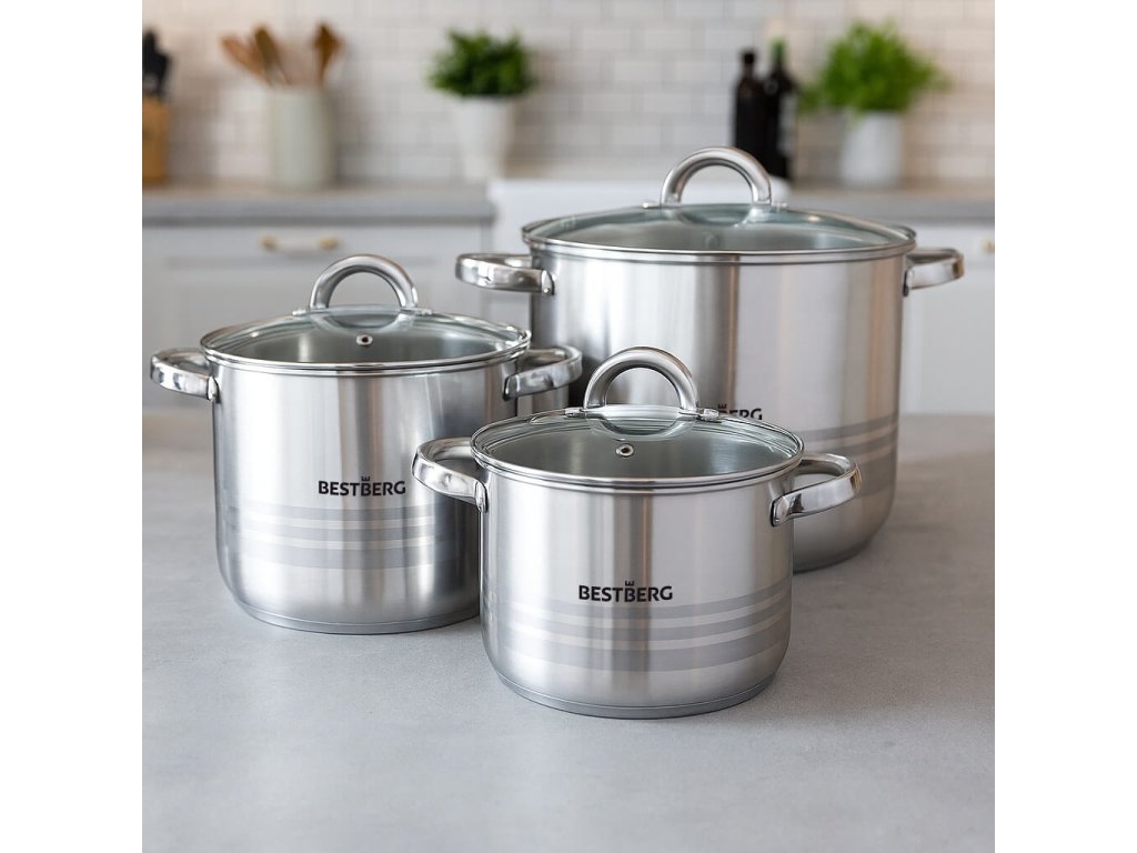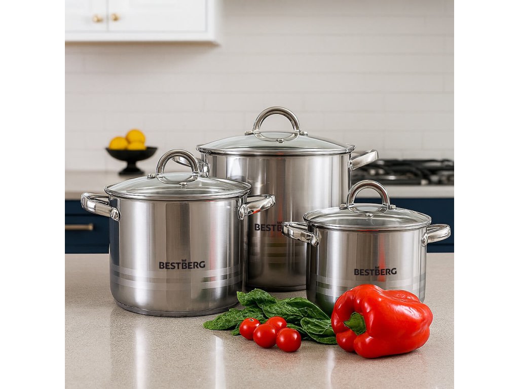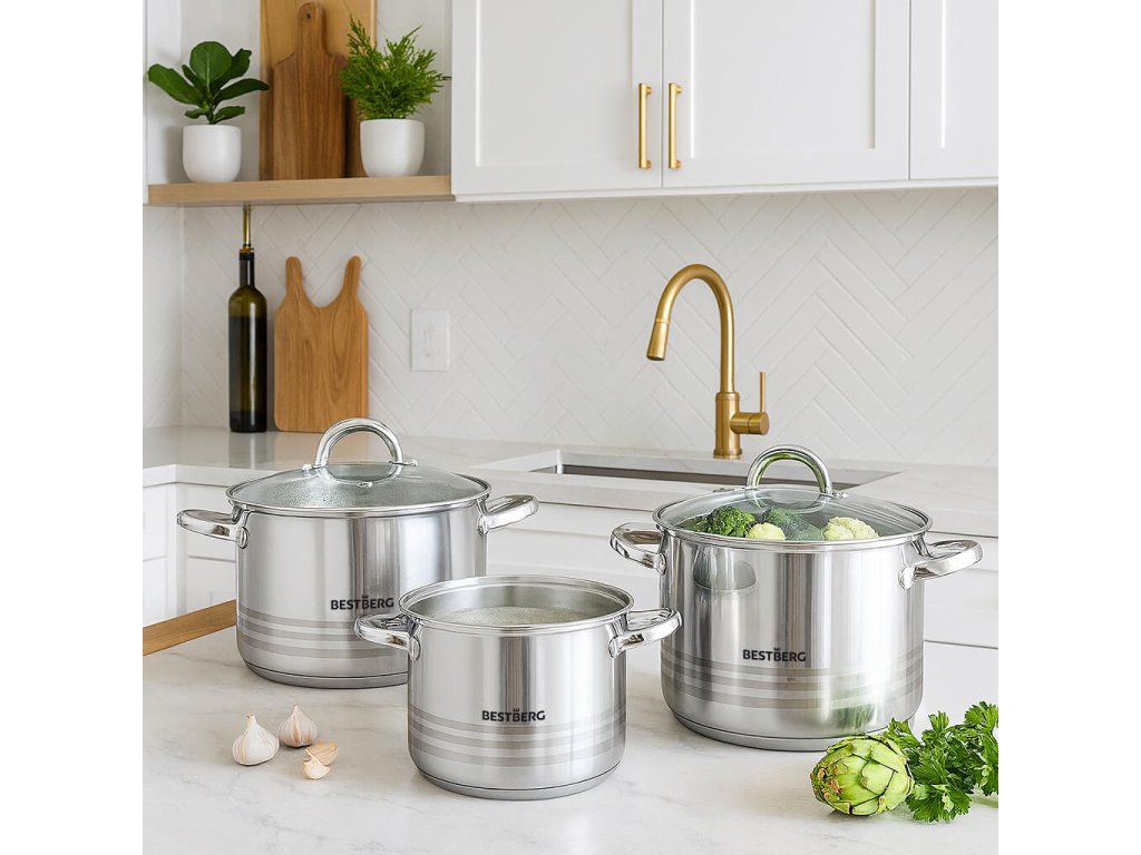 Chcete vařit jako profesionálové, a navíc si užívat dlouhou životnost nádobí? Pak by vám neměla chybět 7dílná sada nerezových hrnců s poklicemi BestBerg.