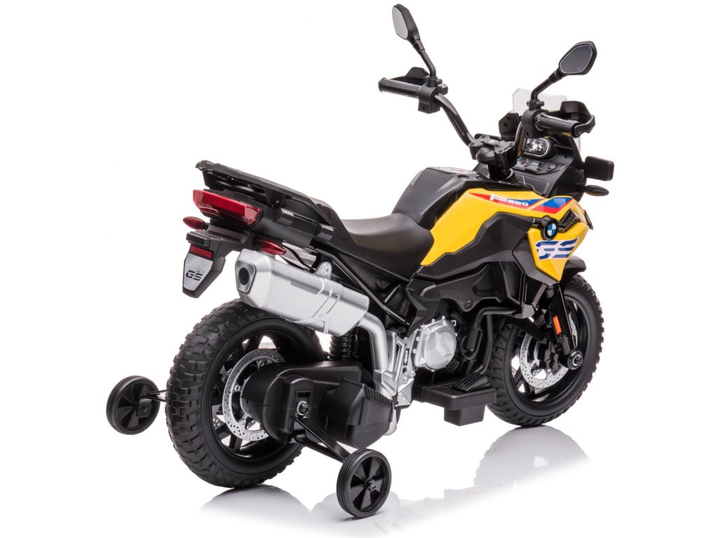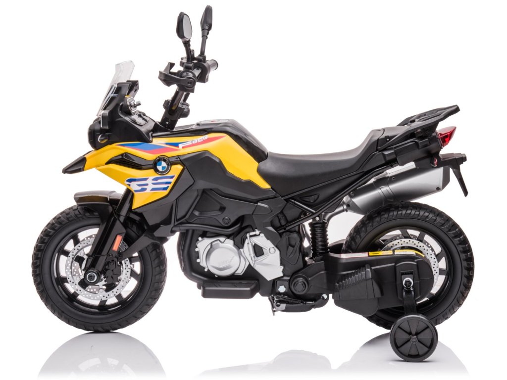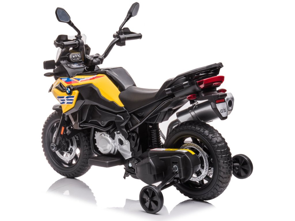 Dětská elektrická motorka BestBerg BBCC-80Y – BMW F 850 GS / nosnost 30 kg / Li-Ion baterie / žlutá