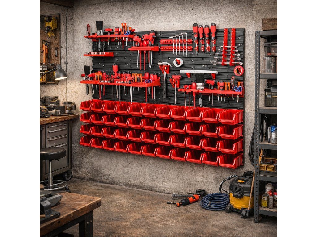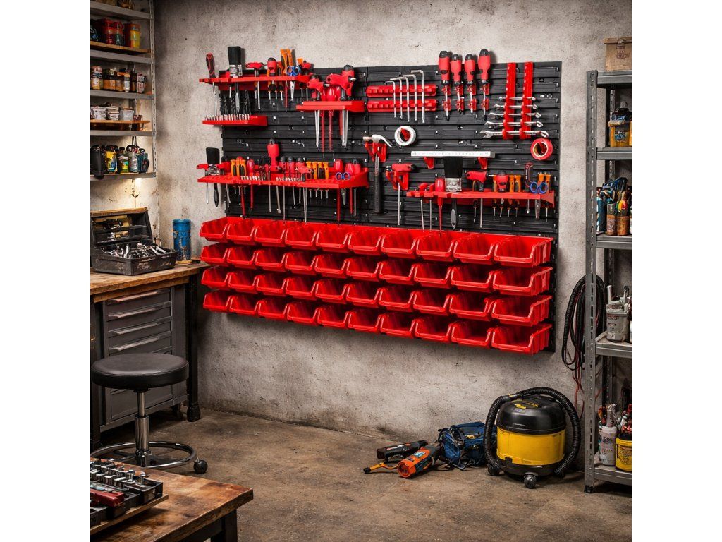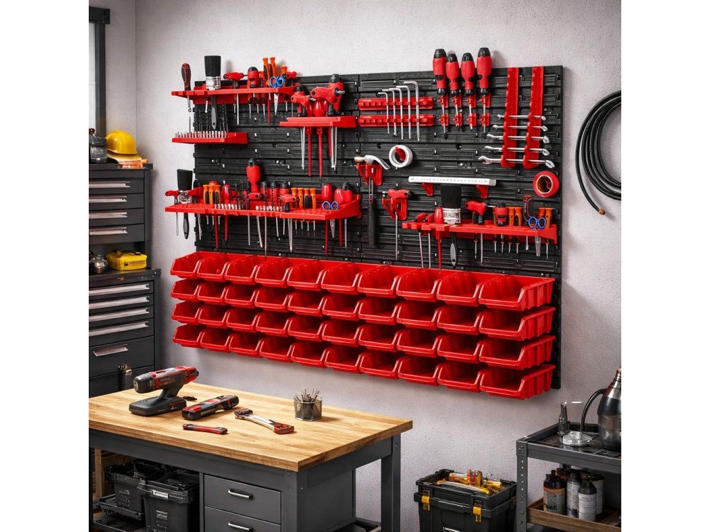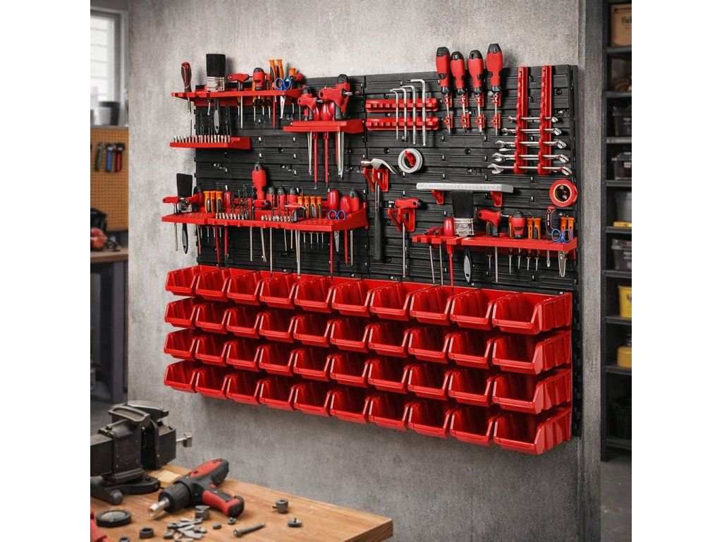 Odolné provedení do dílny i garáže Panely jsou vyrobeny z plastu, který je vhodný pro běžné každodenní použití v domácí dílně i garáži. Celá sestava je navržena tak, aby pomohla udržet pořádek, zlepšila přehlednost pracovního prostoru a usnadnila organizaci nářadí. Díky kompaktním rozměrům balení 40 × 25 × 59 cm se držák také snadněji převáží a skladuje před montáží. TIP: Nástěnný organizér je ideální umístit poblíž pracovního stolu nebo ponku, kde vám výrazně zrychlí přístup k nejpoužívanějšímu nářadí. |