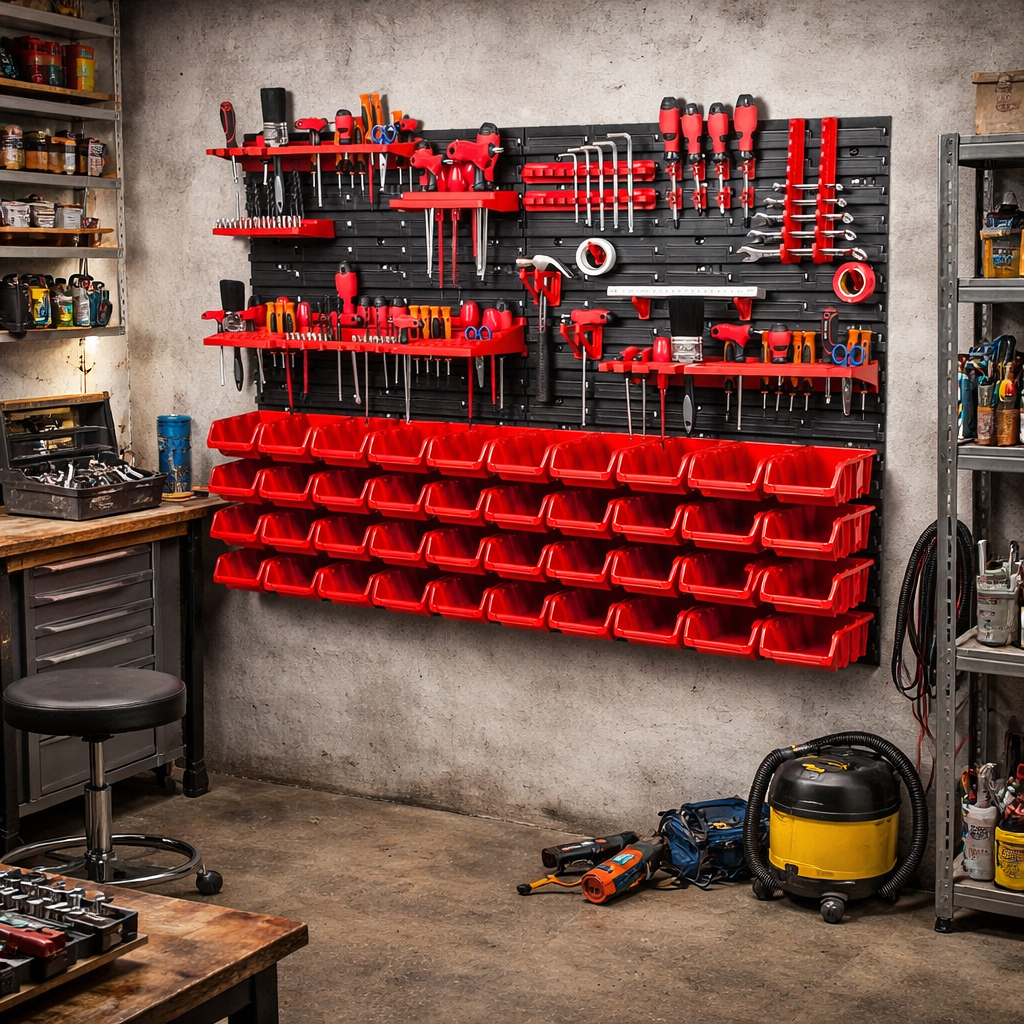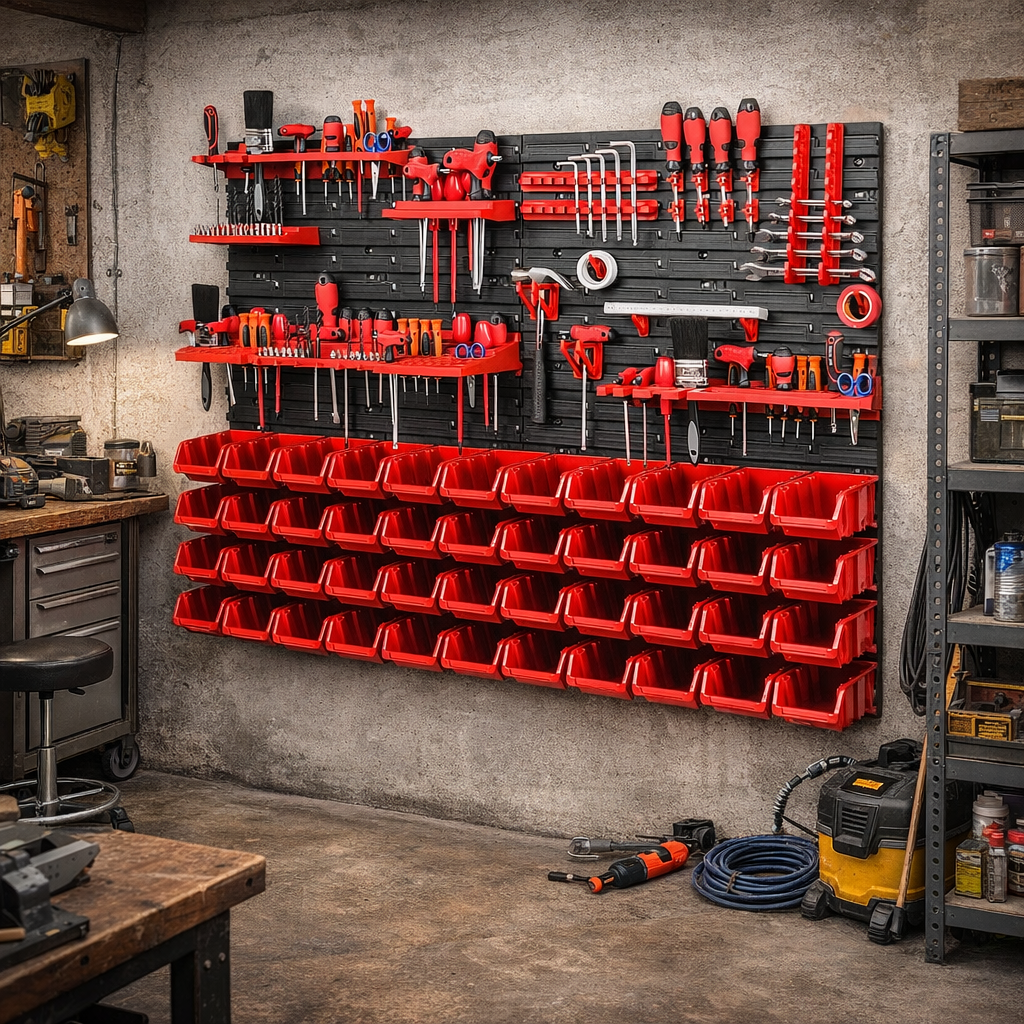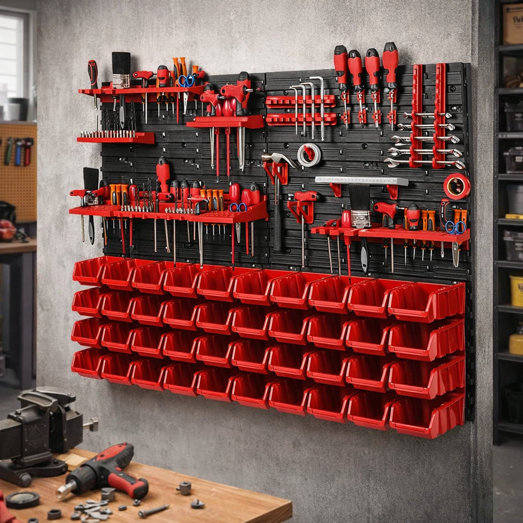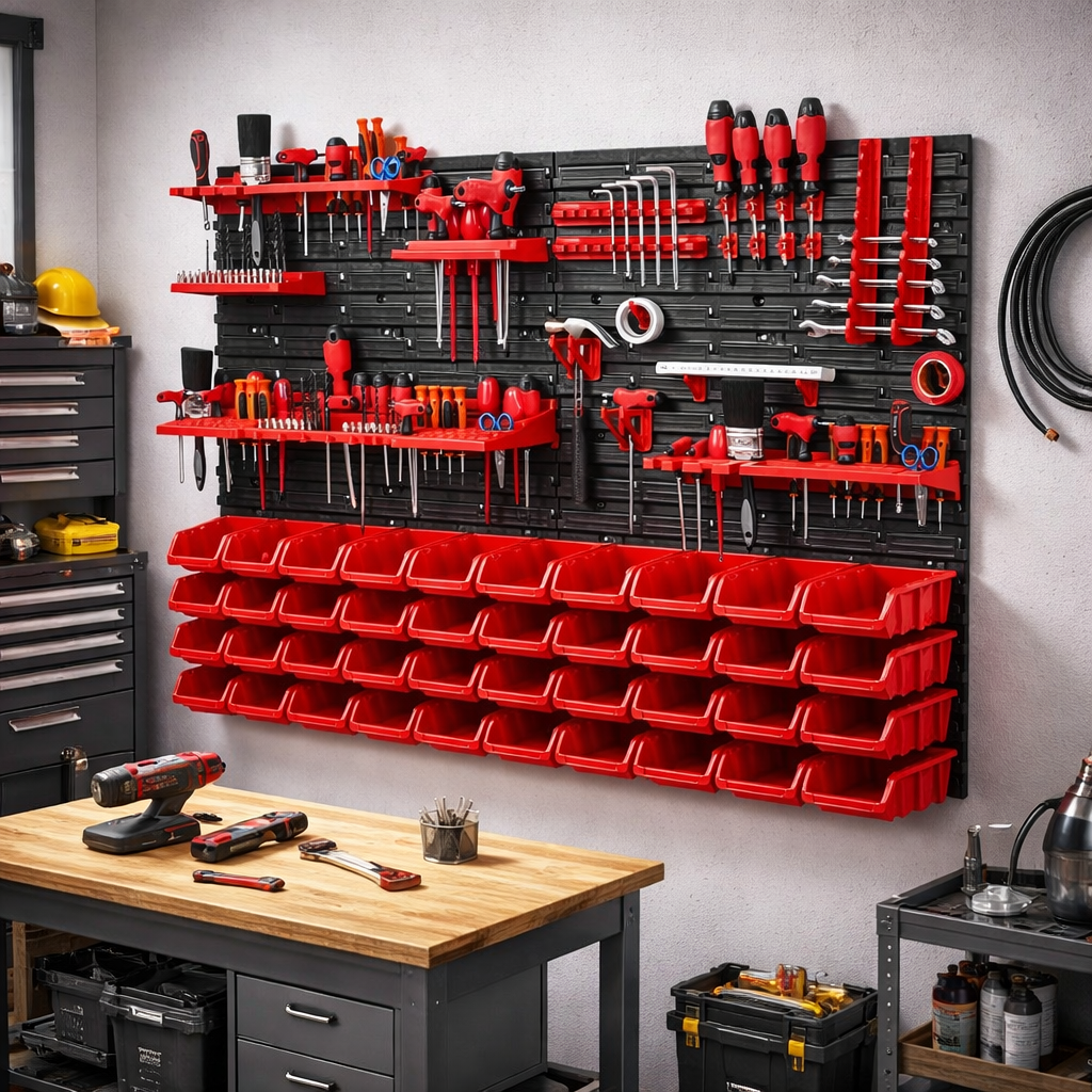 Odolné provedení do dílny i garáže Panely jsou vyrobeny z plastu, který je vhodný pro běžné každodenní použití v domácí dílně i garáži. Celá sestava je navržena tak, aby pomohla udržet pořádek, zlepšila přehlednost pracovního prostoru a usnadnila organizaci nářadí. Díky kompaktním rozměrům balení 40 × 25 × 59 cm se držák také snadněji převáží a skladuje před montáží. TIP: Nástěnný organizér je ideální umístit poblíž pracovního stolu nebo ponku, kde vám výrazně zrychlí přístup k nejpoužívanějšímu nářadí. |