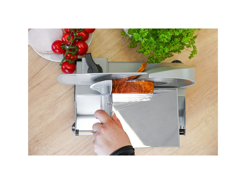 Přesný, odolný a hlavně bezpečnýNezapomněli jsme vůbec na nic. Nerezový kotouč s průměrem 19 cm je nejen ostrý, ale také odolný. Stejně jako celý elektrický kráječ.