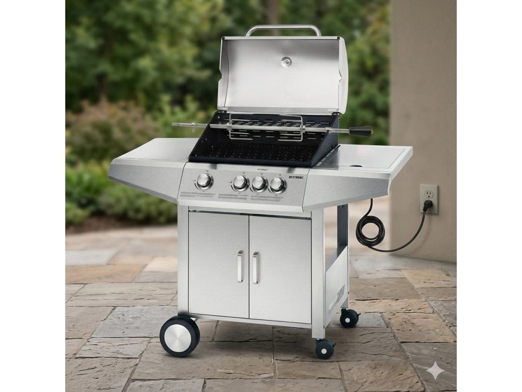 Elektrický otočný rožeň s motorem BBBQ-RS23 pro plynový gril BestBerg BBBQ-23ST / stříbrná/černá