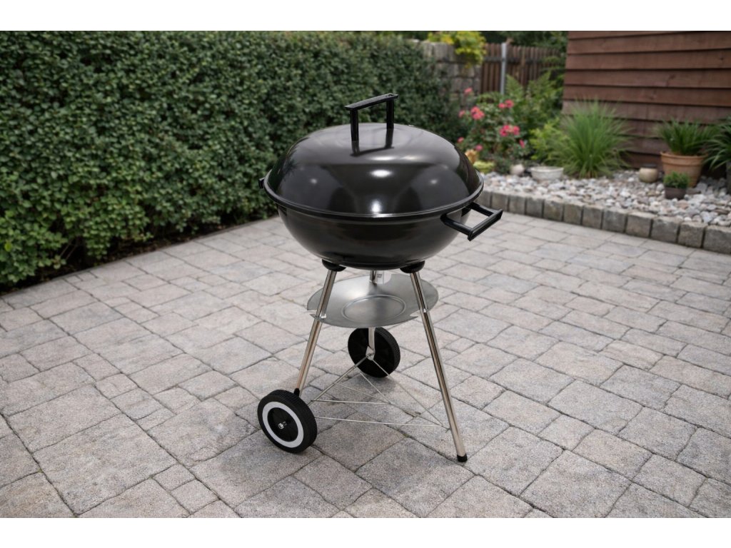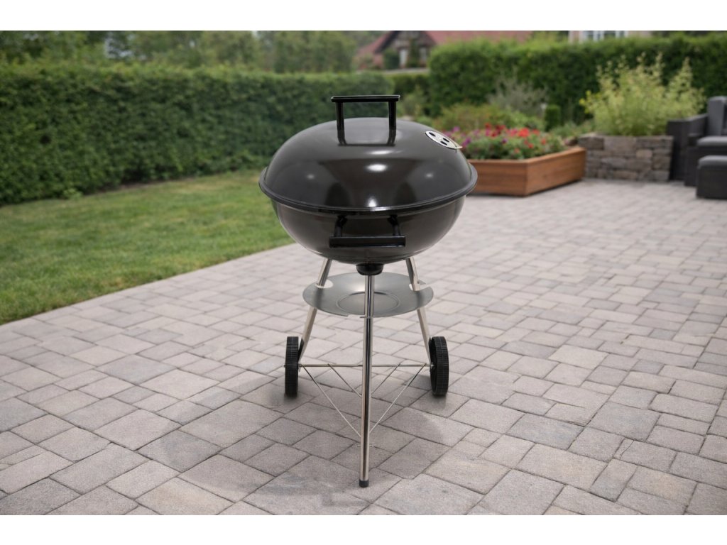 Klasický design s kruhovým grilemKompaktní gril na dřevěné uhlí v černém provedení skvěle zapadne do každého venkovního prostoru. Kruhový grilovací rošt poskytuje dostatek místa pro maso, klobásy, zeleninu i sýry. Díky rovnoměrnému rozložení žáru dosáhnete perfektního výsledku při každém grilování. TIP: Pro intenzivnější chuť použijte kvalitní dřevěné uhlí nebo brikety.