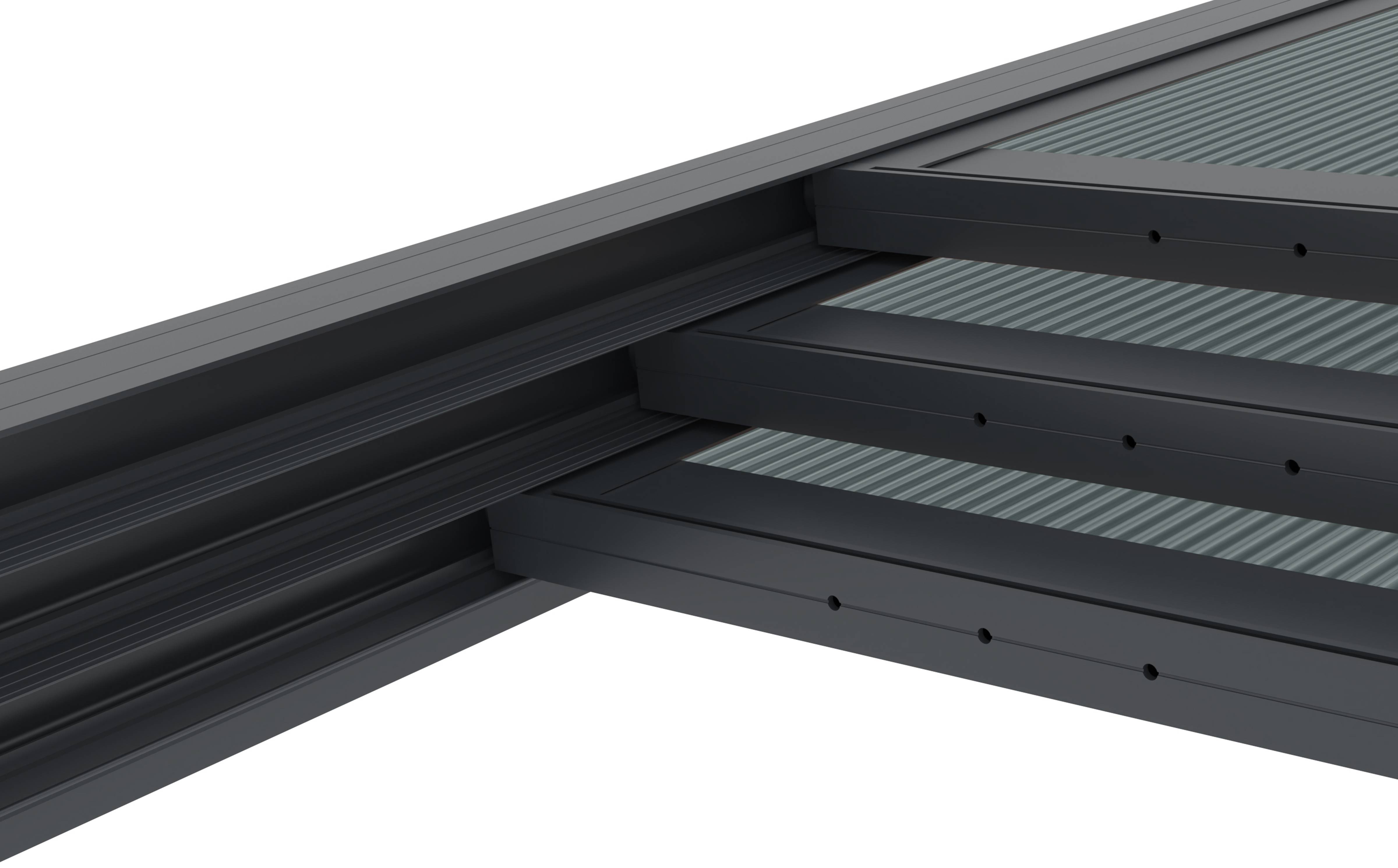Moderní design s posuvnou střechouStylová pergola v antracitovém provedení skvěle zapadne k moderním i klasickým domům. Posuvná střecha s možností nastavení ve 3 úrovních vám umožní regulovat množství světla i větrání podle aktuální potřeby. Lehká, ale pevná konstrukce působí čistě a nadčasově. TIP: Otevřením střechy si během léta vytvoříte příjemně větraný prostor bez přehřívání.