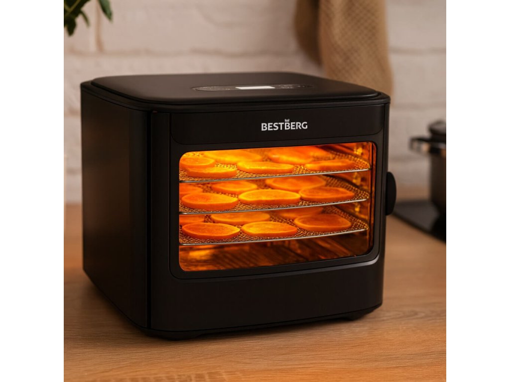 Ovládání je velmi intuitivní – k dispozici máte nastavení teploty a času, takže si celý proces můžete přizpůsobit přesně podle druhu potravin, které sušíte. Ať už se jedná o ovoce, zeleninu, ovocné rolky, maso, rybí jerky, bylinky, ořechy, obiloviny nebo cokoliv dalšího, vždy dosáhnete perfektního výsledku bez zbytečné námahy. Sušení navíc umožňuje plně využít sezónní úrodu a připravit si zásoby na celý rok, a to zcela bez chemie.
