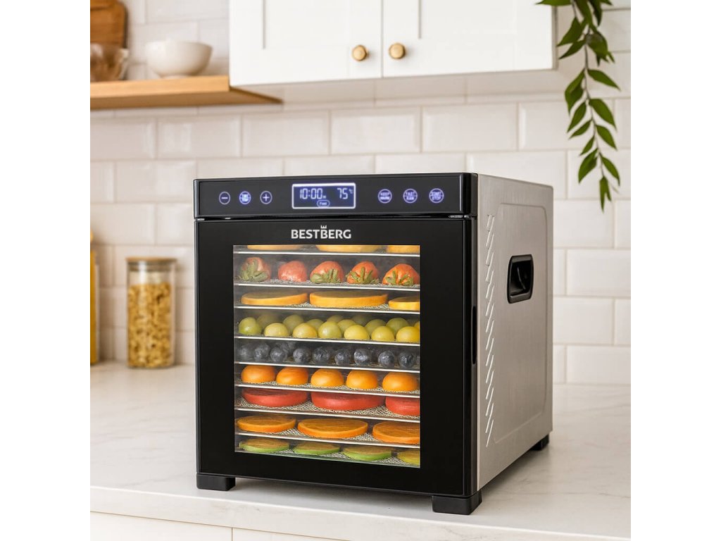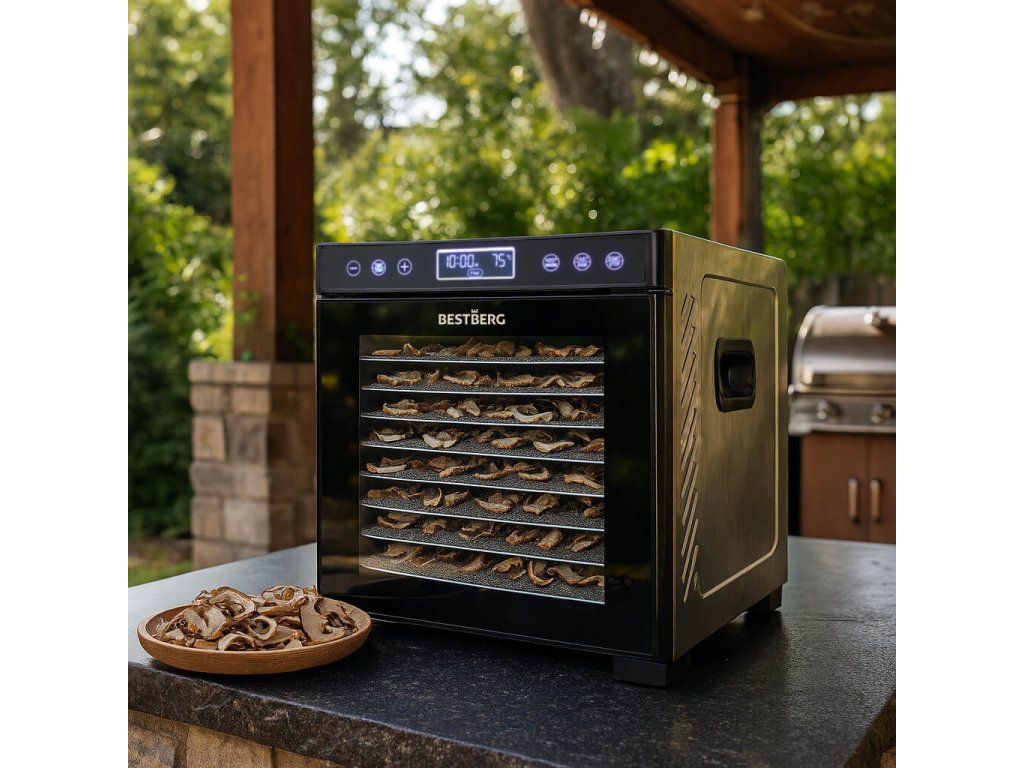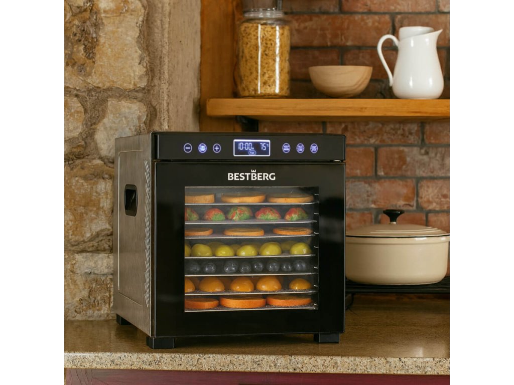Nerezová sušička ovoce, hub a masa BestBerg BBFD-10 / 10 plátů / 650 W / černá/stříbrná