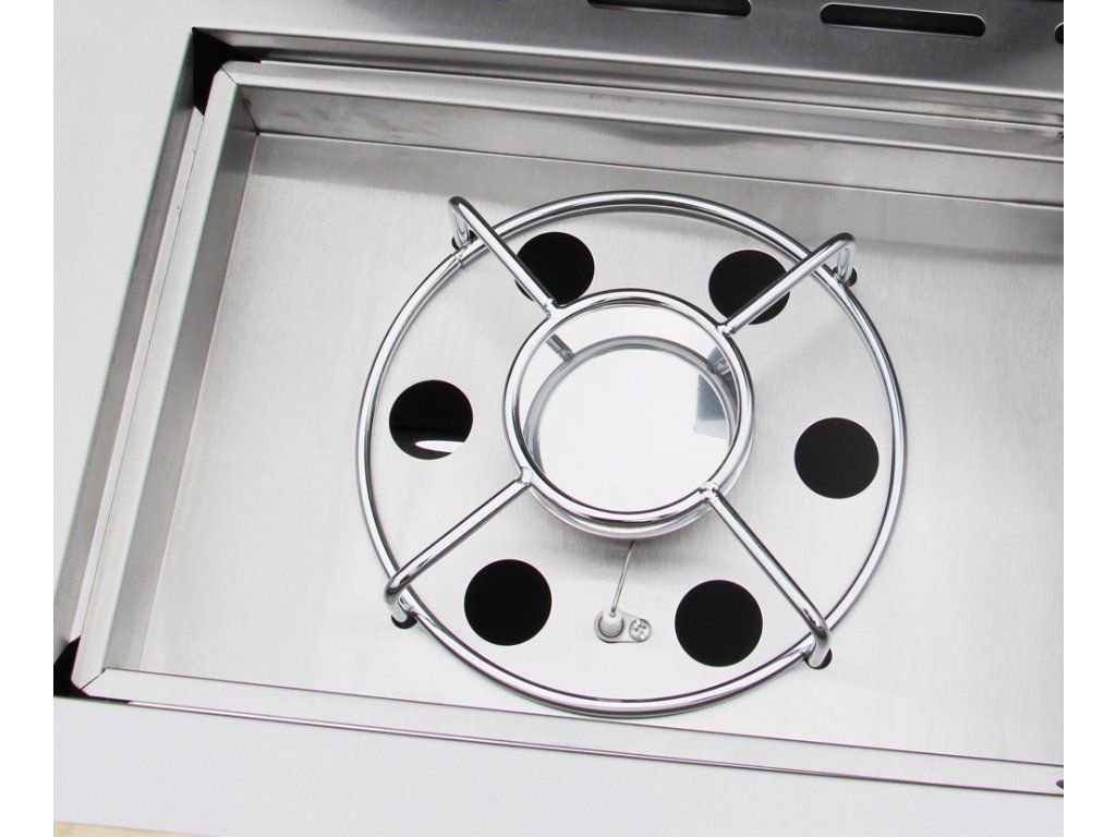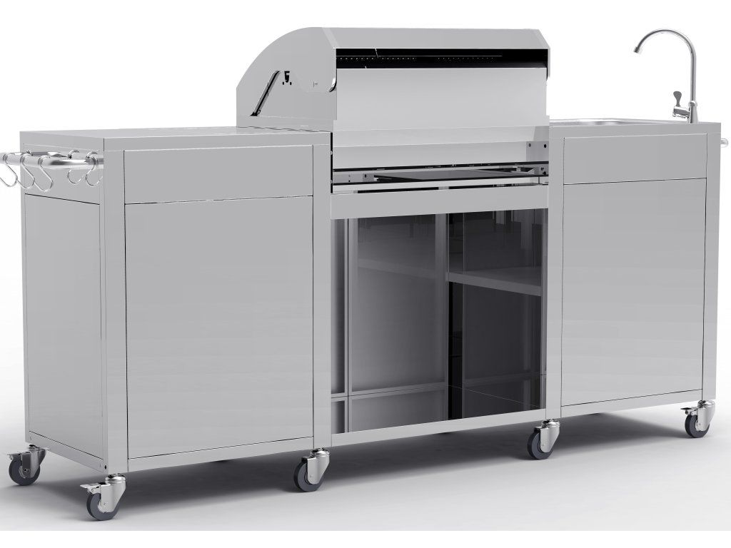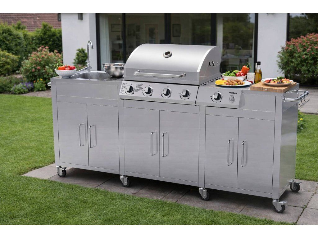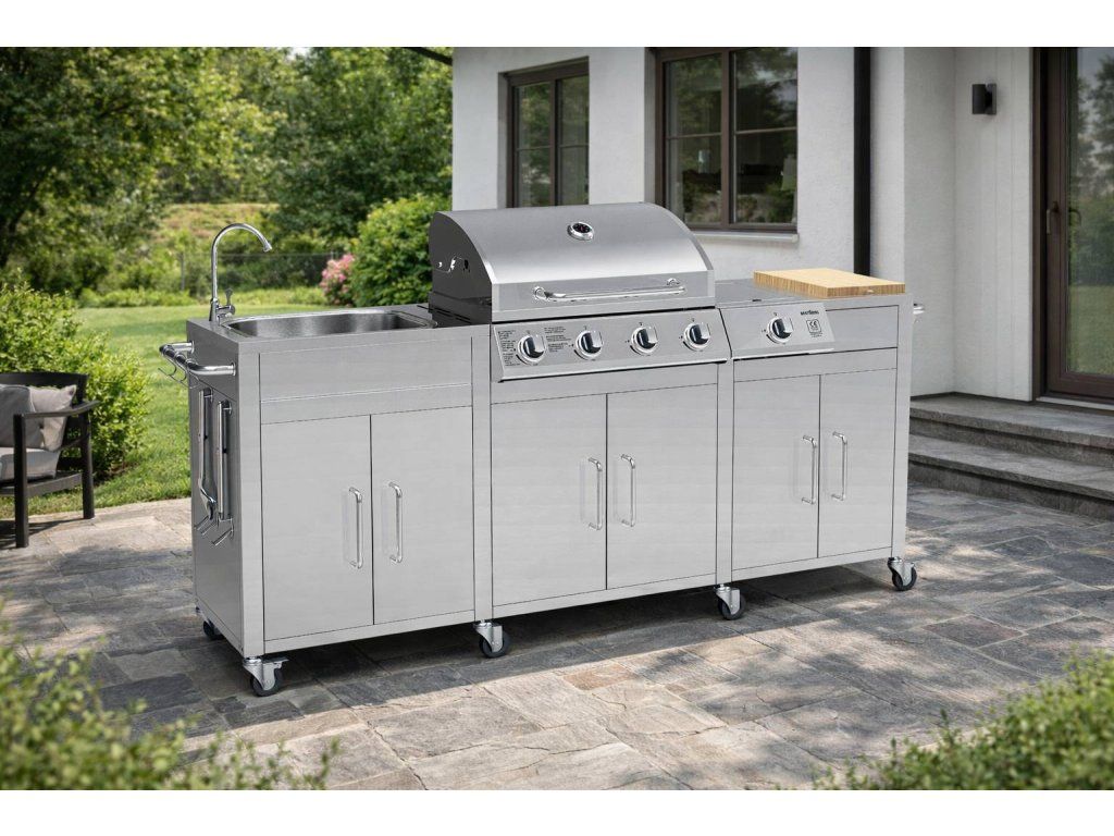 Nerezová konstrukce a kvalitní provedeníCelá kuchyně je celonerezová, což zajišťuje dlouhou životnost a odolnost vůči povětrnostním vlivům. Nerezové provedení se snadno udržuje a zároveň působí moderním a profesionálním dojmem. Chromované grilovací rošty i ohřívací rošt se postarají o rovnoměrnou přípravu pokrmů.