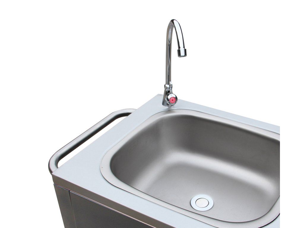Praktické vybavení pro pohodlné vařeníSoučástí kuchyně je umyvadlo s baterií, které výrazně usnadňuje přípravu surovin i následný úklid. Na pravé straně najdete krájecí desku z tvrdého dřeva, ideální pro porcování masa či zeleniny přímo u grilu. Vše tak máte vždy po ruce. TIP: Pro maximální pohodlí doporučujeme doplnit kuchyni o samostatnou nádobu na vodu.