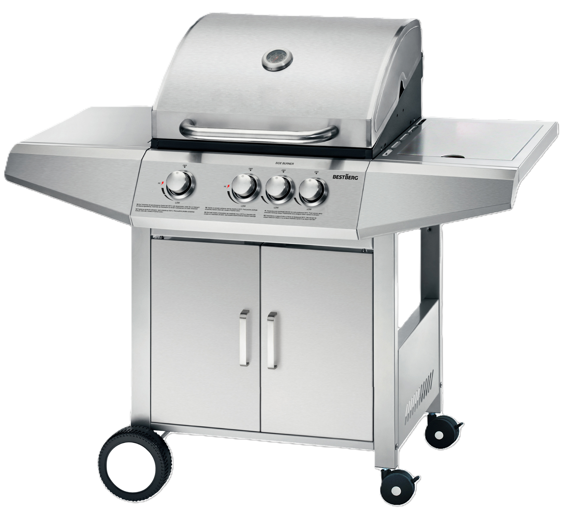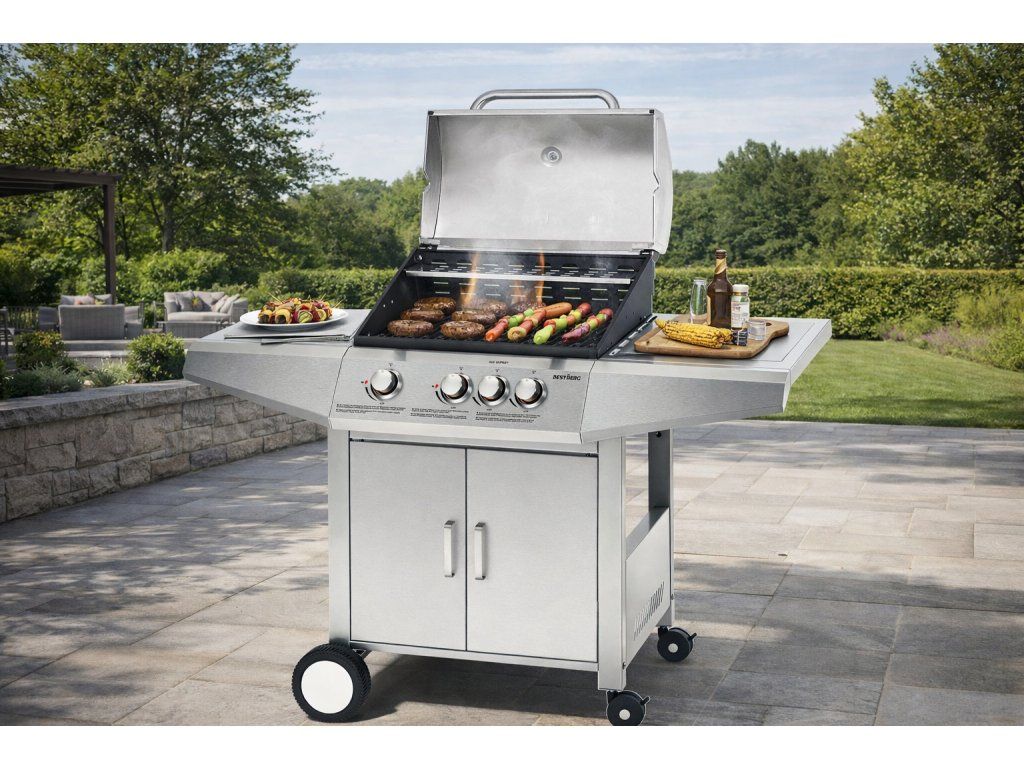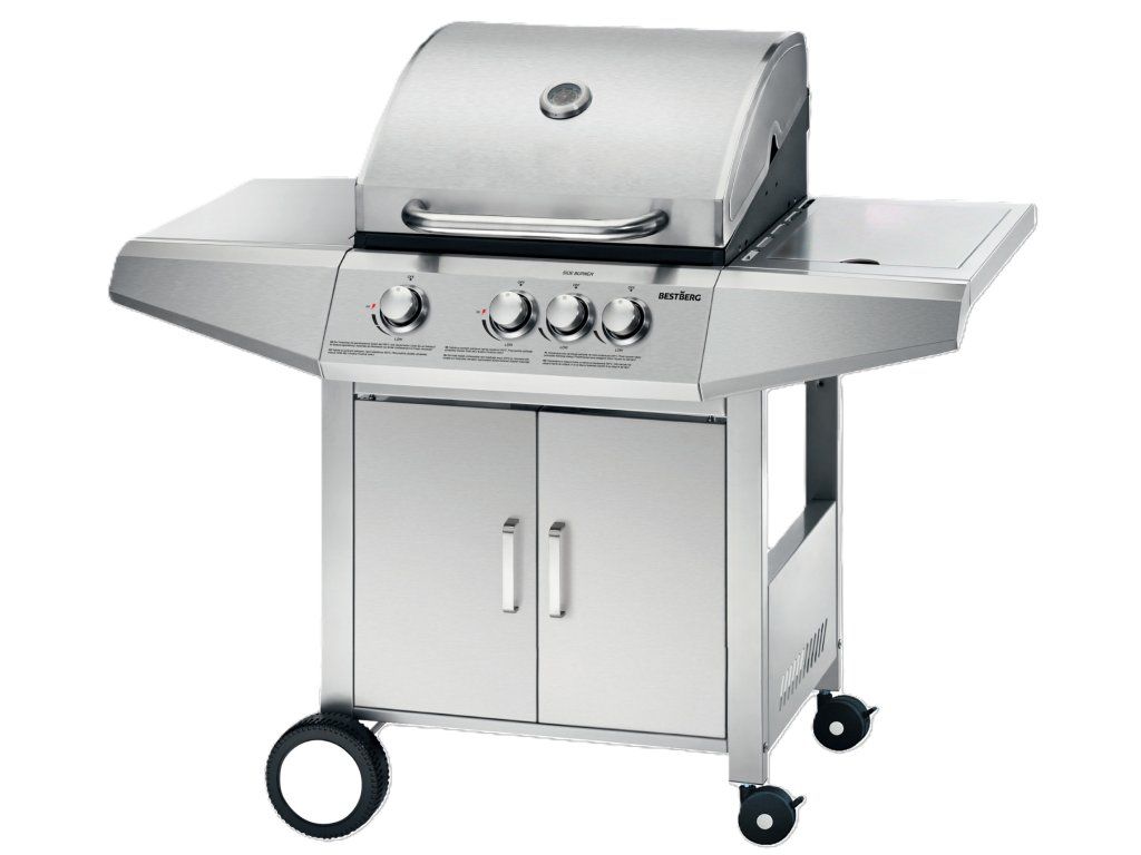 Plynový gril BestBerg BBBQ-23ST / 4 hořáky / 12,6 kW / stříbrná