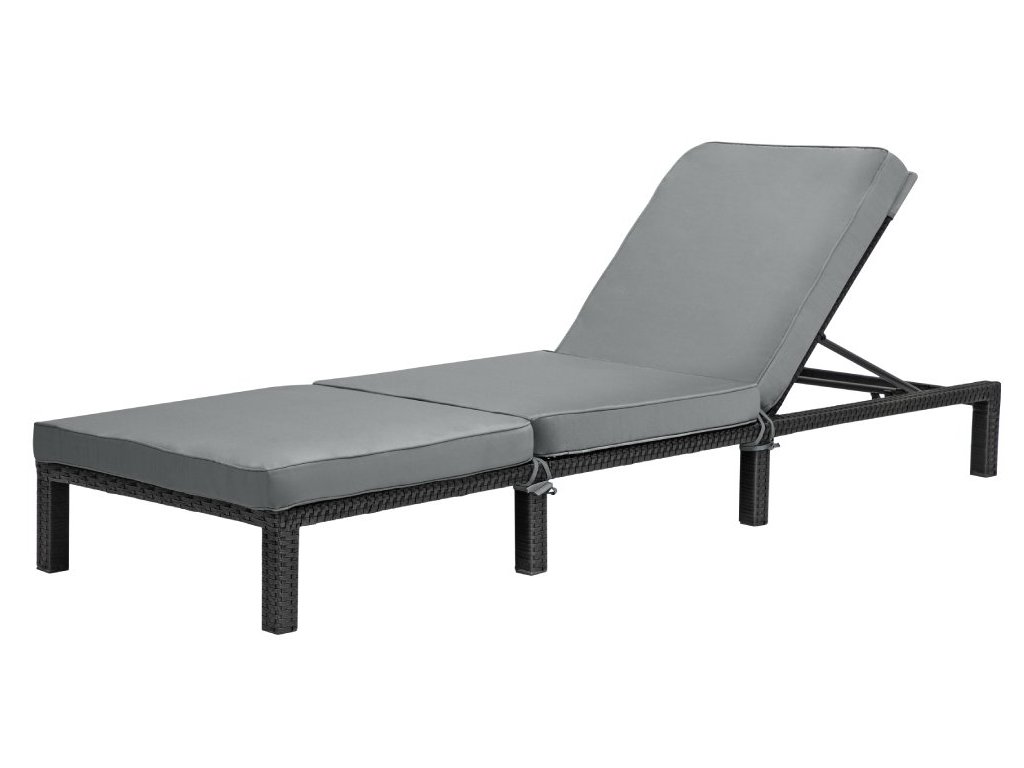 Elegantní ratanové lehátko v nadčasové kombinaci černého ratanu a šedých polštářků – ideální volba pro stylový venkovní odpočinek.