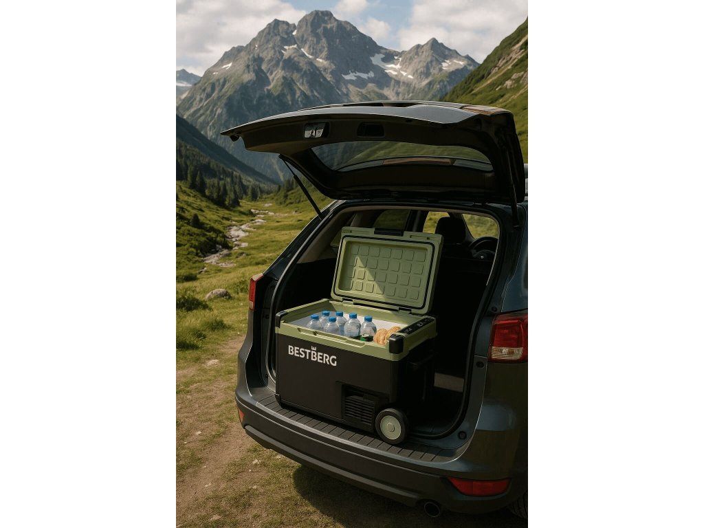 Přenosná kompresorová autochladnička BestBerg BBPF-30A / 30 l / 55 W / černá/zelená