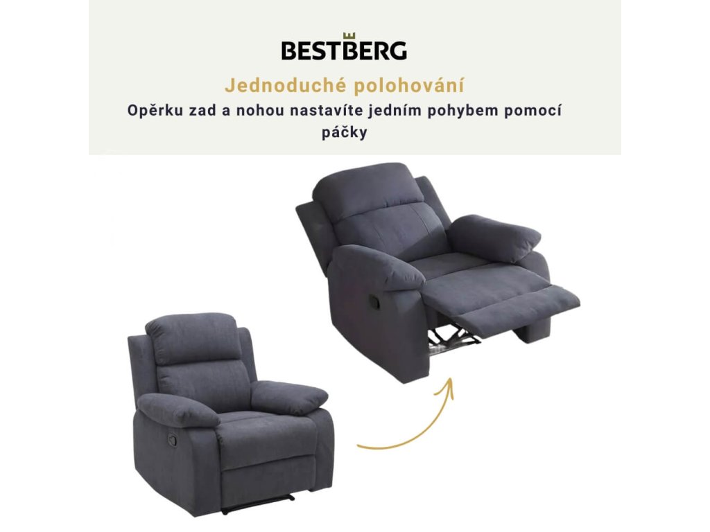 Relaxační polohovatelné křeslo BestBerg BBMCH-1DG / polyuretan/polyester / tmavě šedá