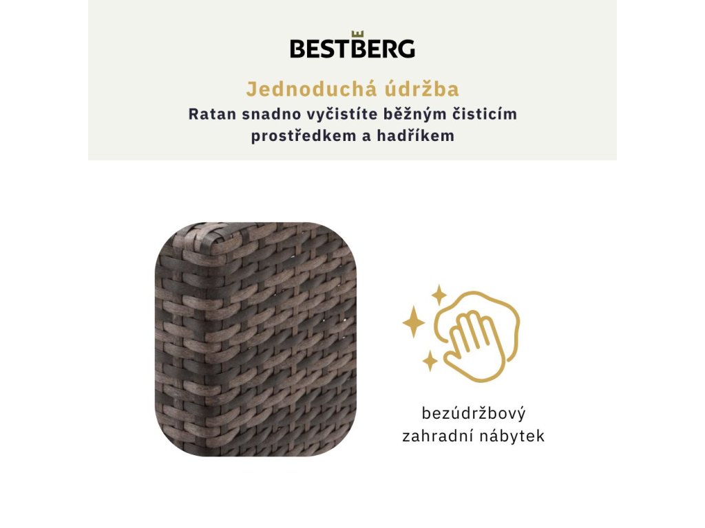 | Jak pečovat o nábytek v průběhu sezóny? | Ratanový i hliníkový nábytek stačí pravidelně otírat vlhkým hadříkem bez použití agresivní chemie. Po dešti nechte nábytek vždy důkladně oschnout, než jej zakryjete nebo uložíte. Pro delší životnost se doporučuje omezit trvalé vystavení přímému dešti a slunci. |
