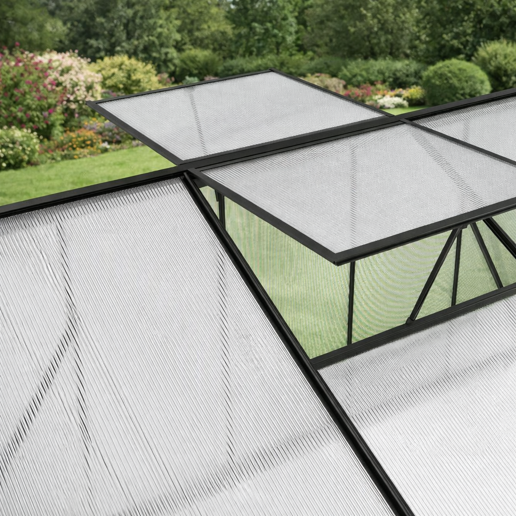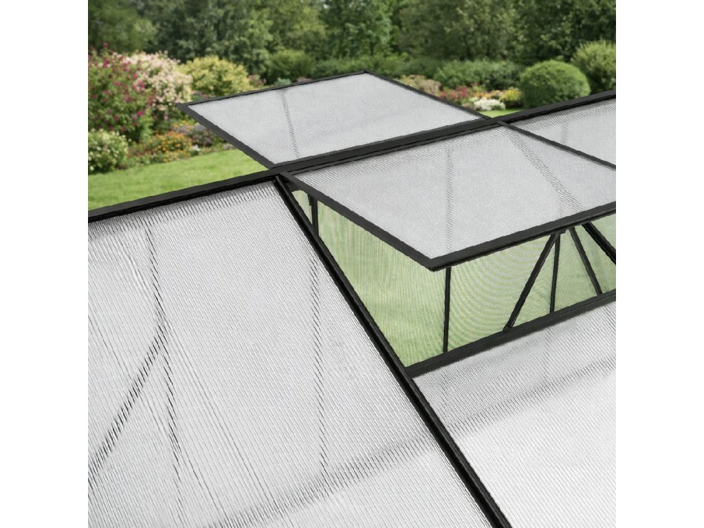 Kvalitní polykarbonátové deskyVýplň tvoří 4mm polykarbonátové desky, které dobře propouštějí světlo a zároveň chrání rostliny před nepříznivým počasím. TIP: Dutinkový polykarbonát pomáhá udržovat stabilní teplotu uvnitř skleníku.
