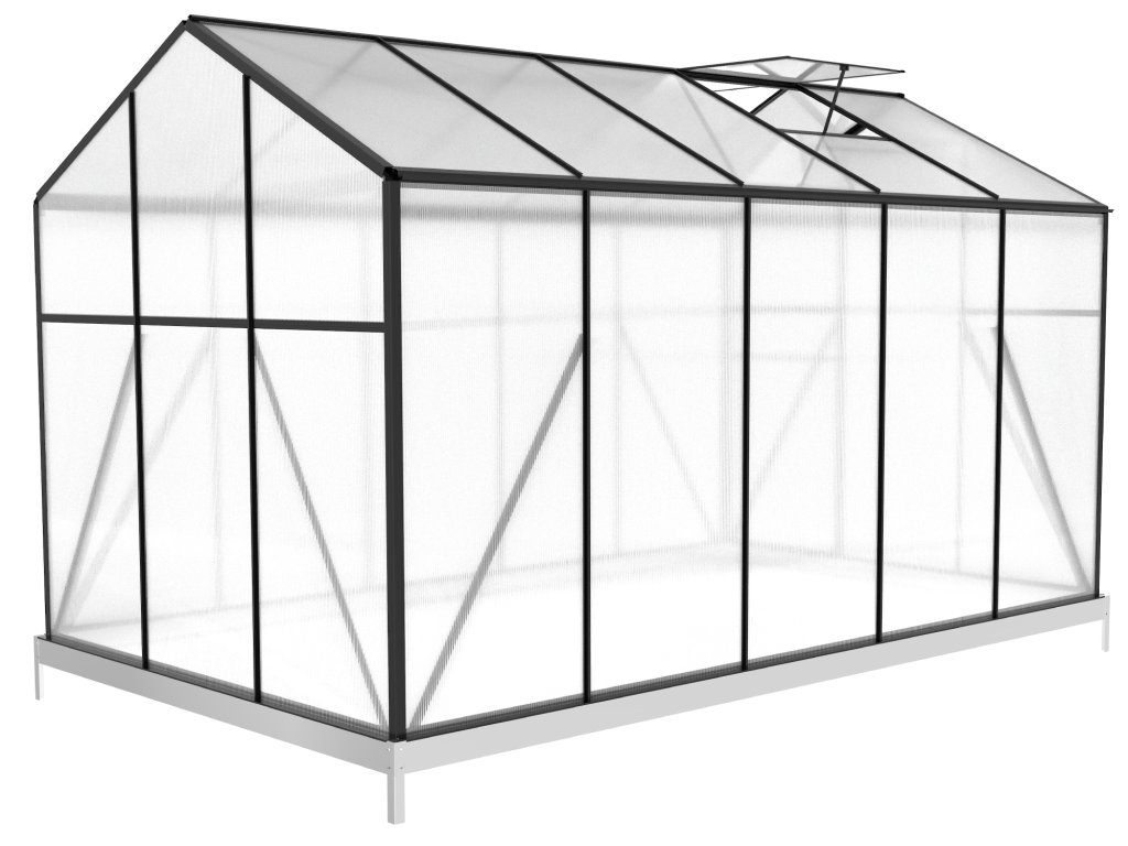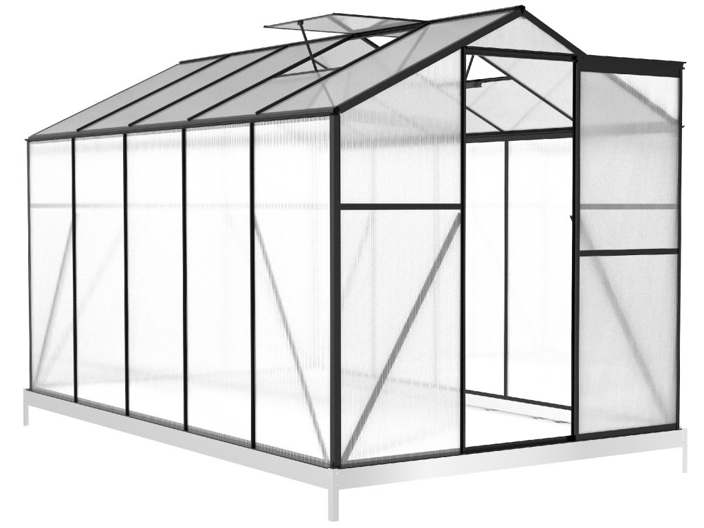 Praktické větrání a pevný základSkleník je vybaven jedněmi posuvnými dveřmi pro pohodlný vstup a dvěma ventilačními okny pro regulaci teploty a vlhkosti. Součástí modelu je také základový rám, který zvyšuje stabilitu celé konstrukce. TIP: Pro maximální stabilitu doporučujeme základový rám ukotvit k pevnému podkladu.