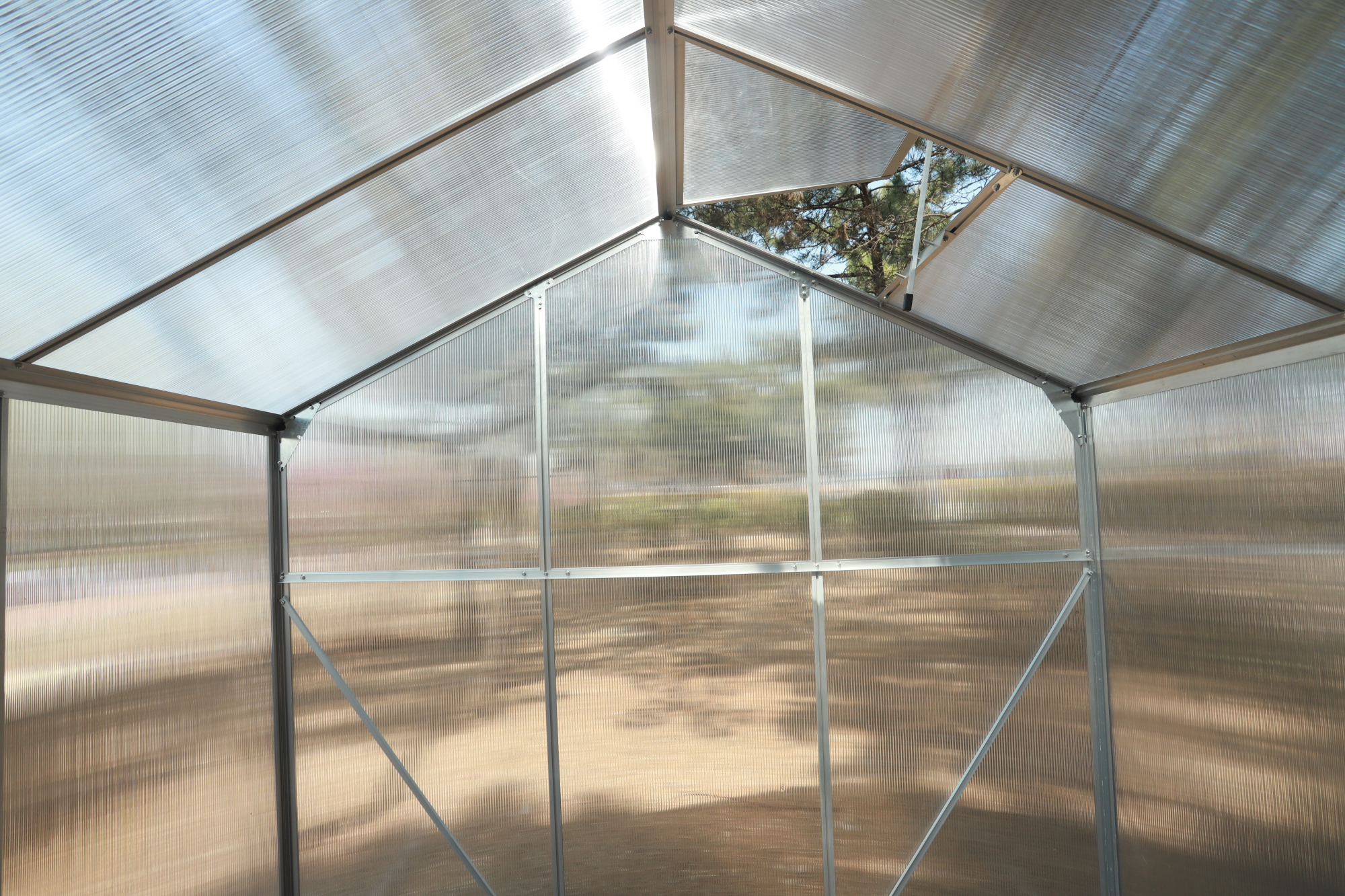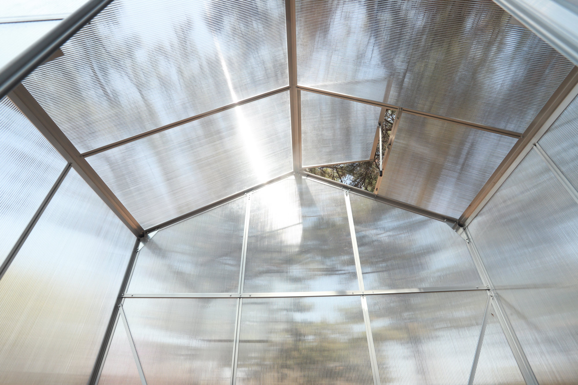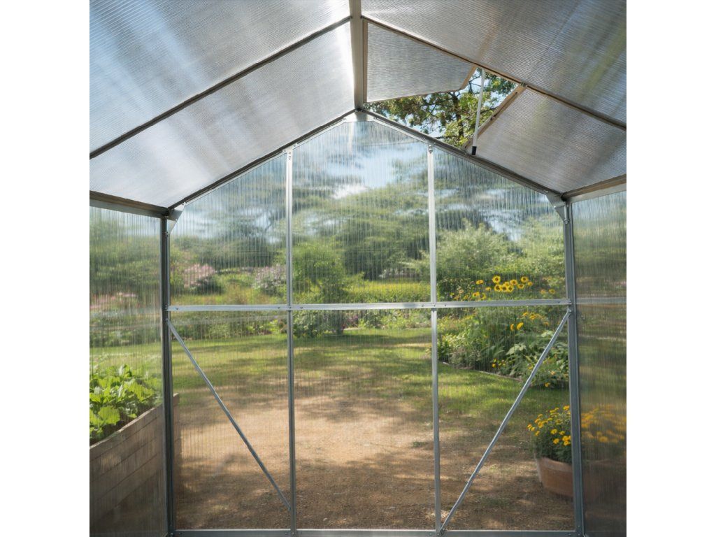 Kvalitní polykarbonátové deskyVýplň tvoří 4mm polykarbonátové desky, které dobře propouštějí světlo a zároveň chrání rostliny před nepříznivým počasím. TIP: Dutinkový polykarbonát pomáhá udržovat stabilní teplotu uvnitř skleníku.