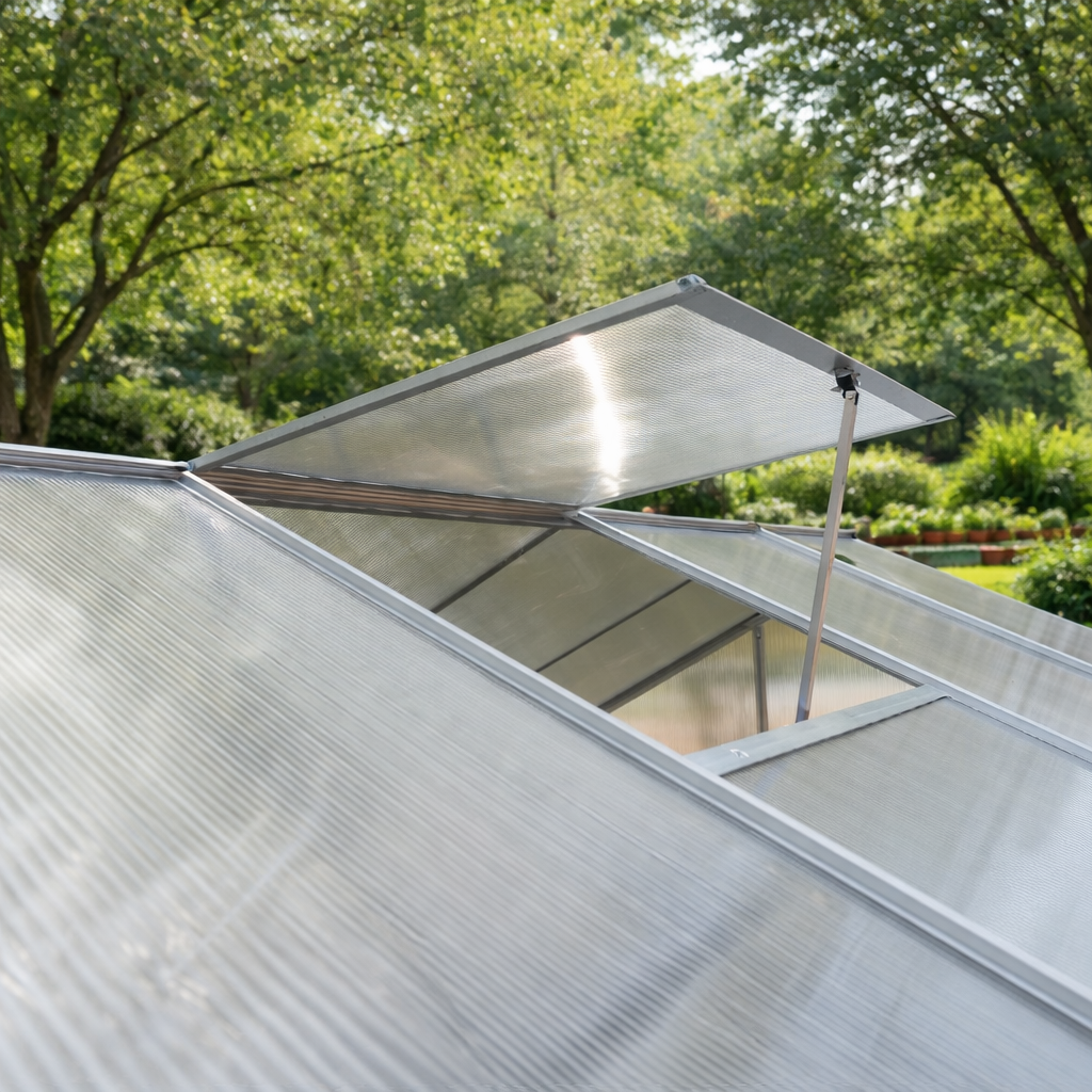 Kvalitní polykarbonátové deskyVýplň tvoří 4mm polykarbonátové desky, které dobře propouštějí světlo a zároveň chrání rostliny před nepříznivým počasím. TIP: Dutinkový polykarbonát pomáhá udržovat stabilní teplotu uvnitř skleníku.