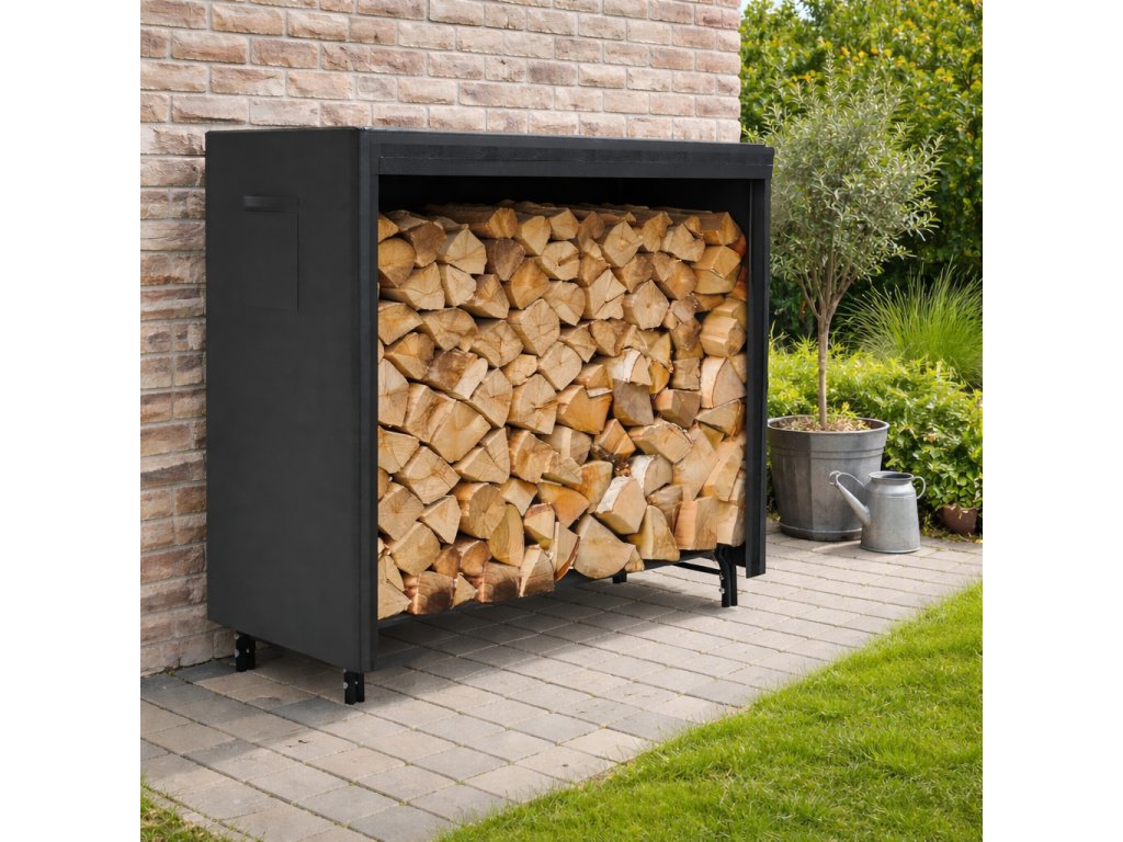 Stojan na dřevo s krytem BestBerg BBFR-122C / 122 x 34 x 110 cm / černá