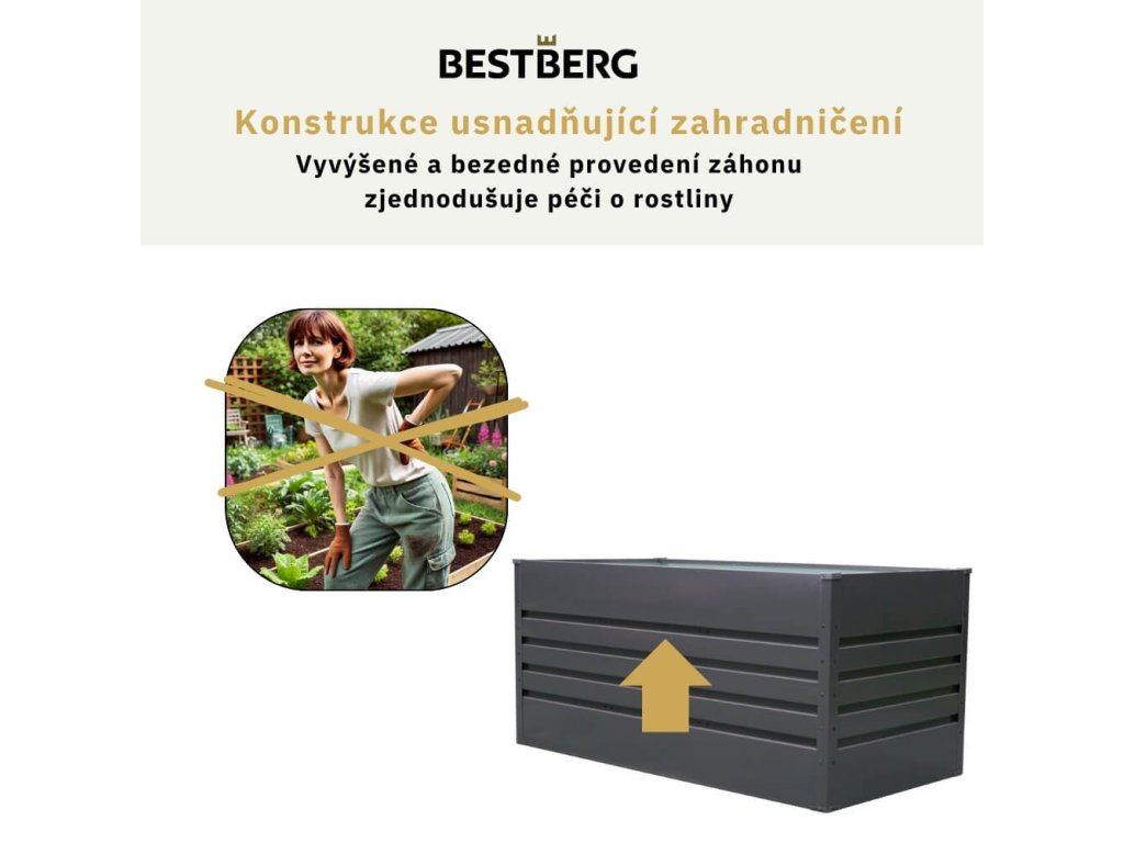 Zahradničení nikdy nebylo jednodušší. S vyvýšeným záhonem BestBerg získáte bezúdržbový a elegantní záhon pro pěstování. Vyvýšený záhon promění každý kousek prostoru ve vaši osobní zahrádku.