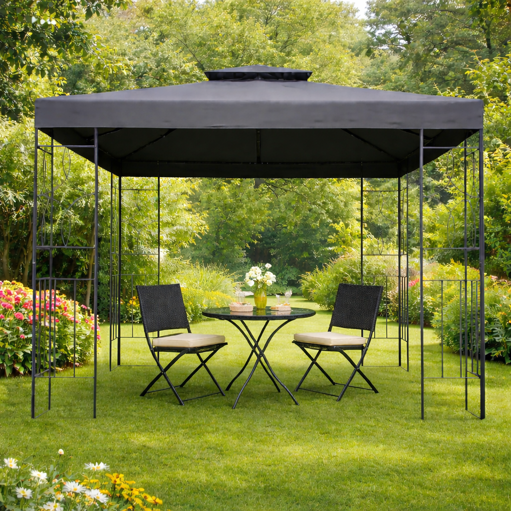 Komfortní prostor pro relaxaciZahradní altán vytvoří ideální zázemí pro odpočinek i společenské chvíle. Poskytne vám příjemný stín během horkých dní a ochranu při nepříznivém počasí. Dvojitá stříška pomáhá regulovat teplotu uvnitř altánu a zabraňuje hromadění tepla. Integrovaná oka navíc umožňují odtok dešťové vody.