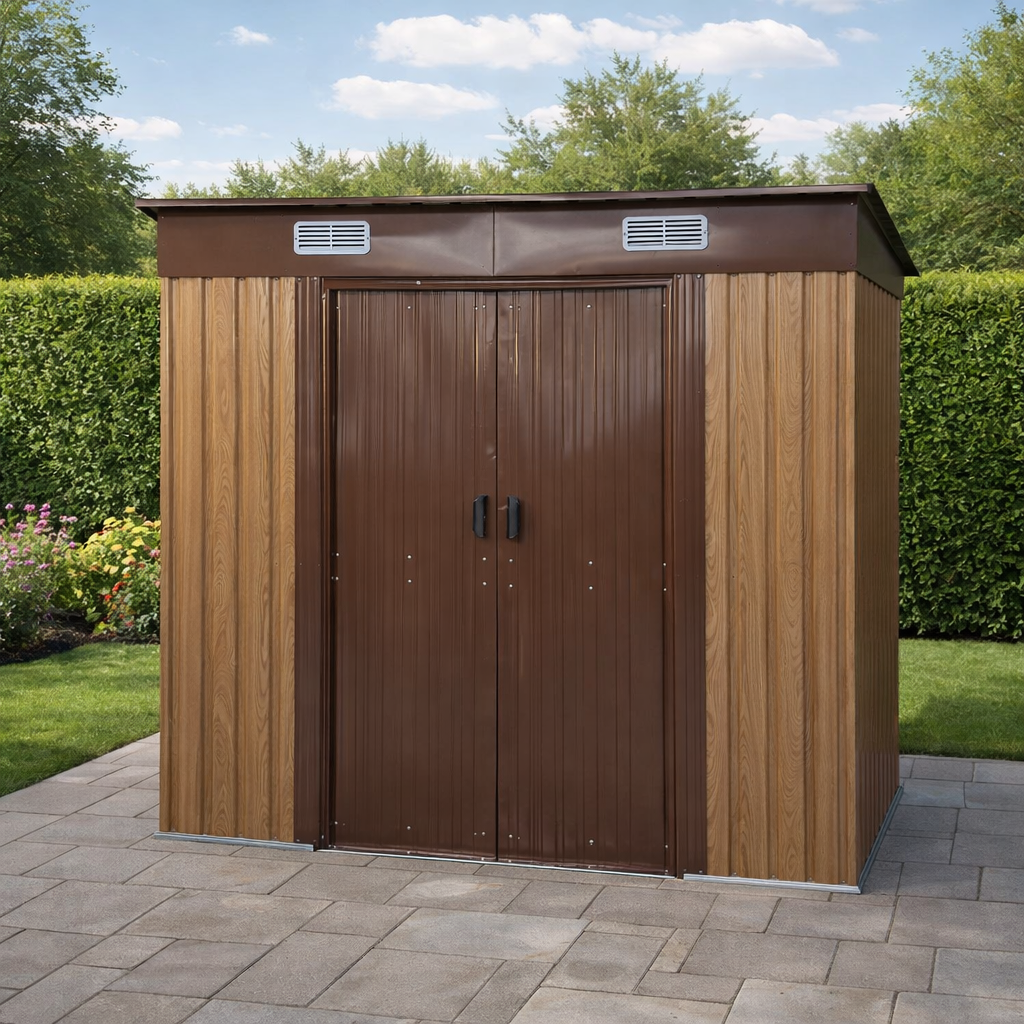 Odolná ocelová konstrukceKonstrukce je vyrobena z pozinkované oceli o síle 0,6 mm, která zajišťuje stabilitu a dlouhou životnost. Opláštění tvoří lakovaný pozinkovaný ocelový plech o síle 0,25 mm. Pozinkování chrání materiál proti korozi a zajišťuje odolnost vůči vlhkosti i nepříznivým povětrnostním podmínkám. Robustní rám zvyšuje celkovou pevnost stavby. TIP: Pro maximální stabilitu doporučujeme domek umístit na rovný a zpevněný podklad.
