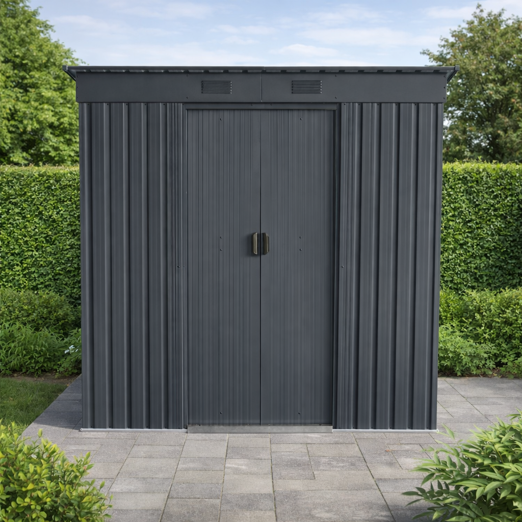 Zdravé prostředí a variabilní využitíModerní kovové provedení v antracitové barvě je doplněno větracími otvory, které podporují přirozenou cirkulaci vzduchu a pomáhají omezovat vznik vlhkosti uvnitř domku. Díky tomu zůstává uložené vybavení lépe chráněno před kondenzací a zatuchlým prostředím. Domek můžete využít jako: