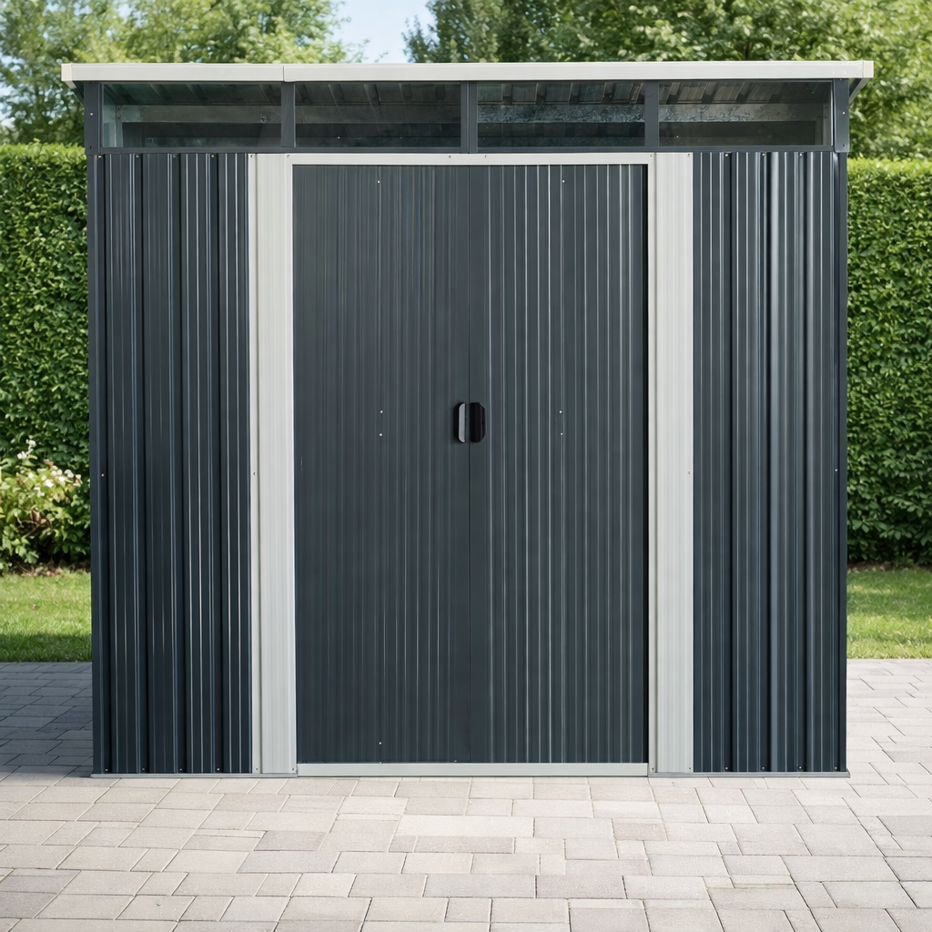 Moderní design s praktickým světlíkemKvalitní zahradní domek v elegantním antracitovém nebo bílém provedení skvěle zapadne do každé zahrady i dvora. Díky ploše 5,6 m² poskytuje dostatek prostoru pro uskladnění zahradní techniky i dalšího vybavení. Světlík z odolného polykarbonátu přivádí do interiéru přirozené světlo, takže se uvnitř pohodlně pohybujete i bez nutnosti umělého osvětlení. TIP: Pultová střecha nejen moderně vypadá, ale zároveň umožňuje efektivní odtok dešťové vody.