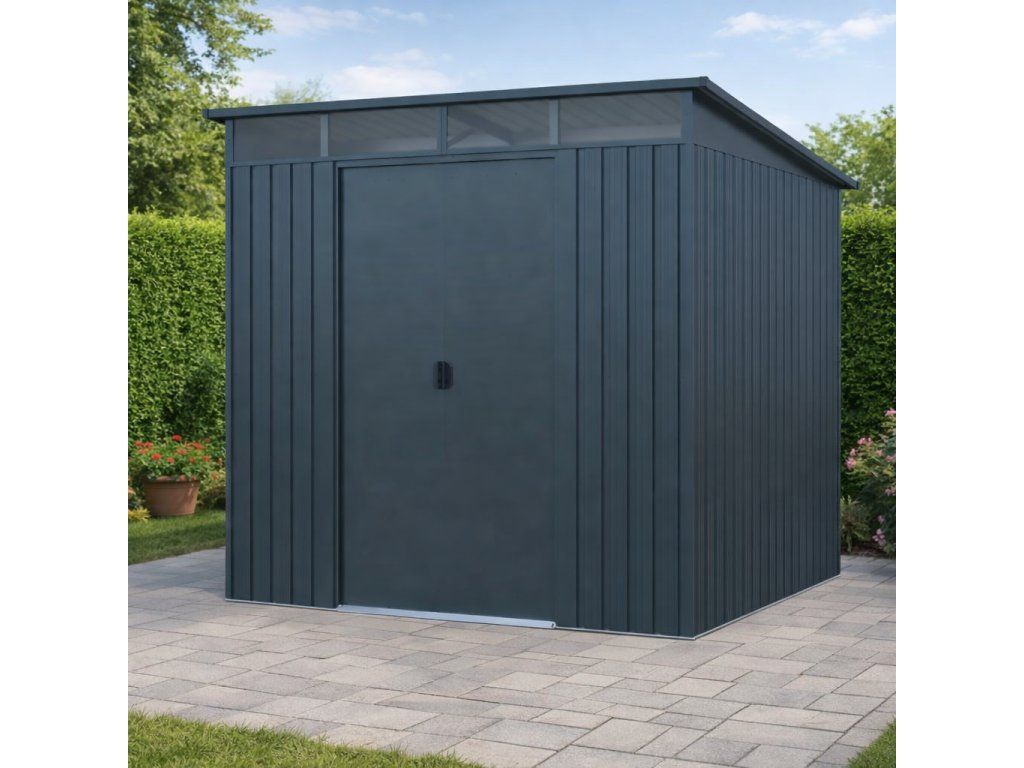 Moderní design s praktickým světlíkemKvalitní zahradní domek v elegantním antracitovém nebo bílém provedení skvěle zapadne do každé zahrady i dvora. Díky ploše 5,6 m² poskytuje dostatek prostoru pro uskladnění zahradní techniky i dalšího vybavení. Světlík z odolného polykarbonátu přivádí do interiéru přirozené světlo, takže se uvnitř pohodlně pohybujete i bez nutnosti umělého osvětlení. TIP: Pultová střecha nejen moderně vypadá, ale zároveň umožňuje efektivní odtok dešťové vody.