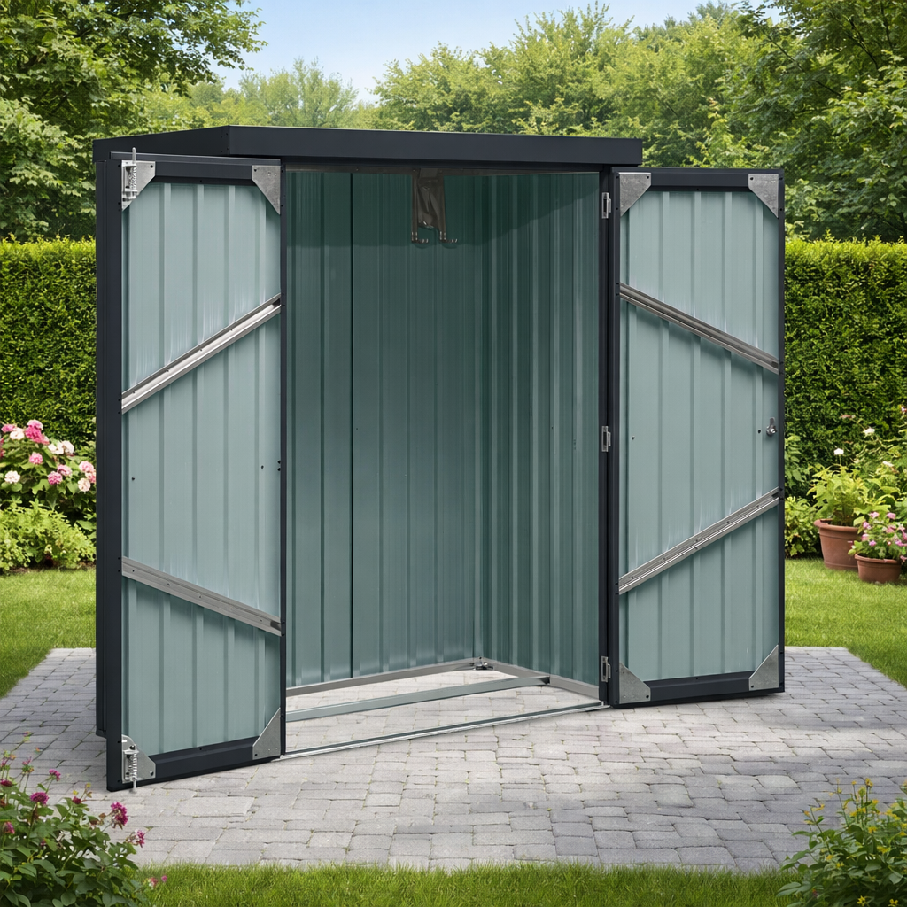 Odolnost pro venkovní použitíKovové provedení je vhodné pro celoroční venkovní využití. Konstrukce chrání uložené věci před deštěm a běžnými povětrnostními vlivy.