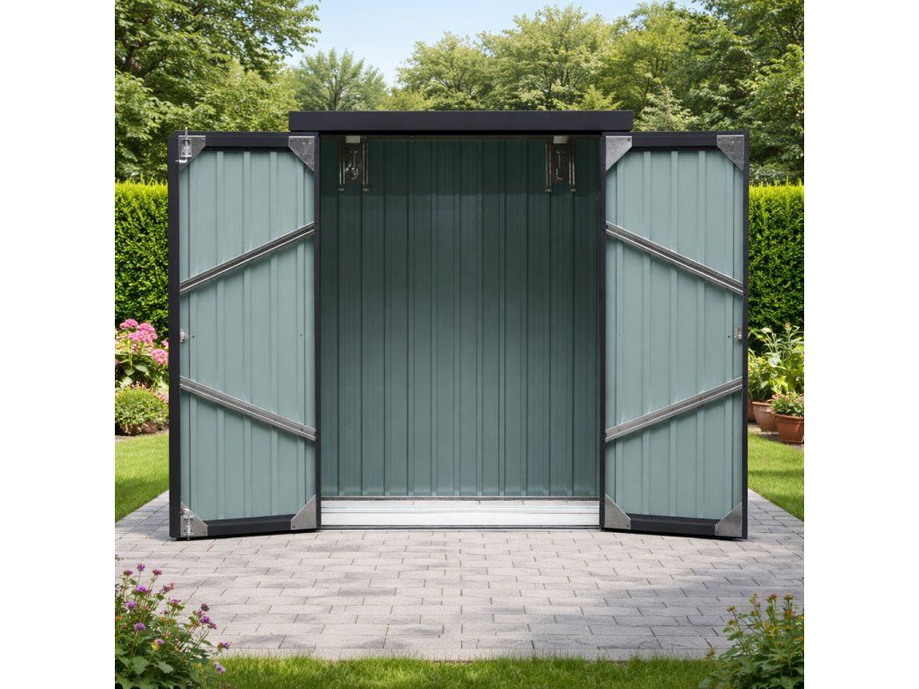 Odolnost pro venkovní použitíKovové provedení je vhodné pro celoroční venkovní využití. Konstrukce chrání uložené věci před deštěm a běžnými povětrnostními vlivy.