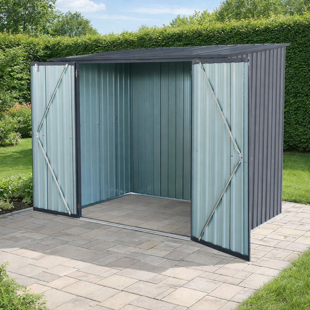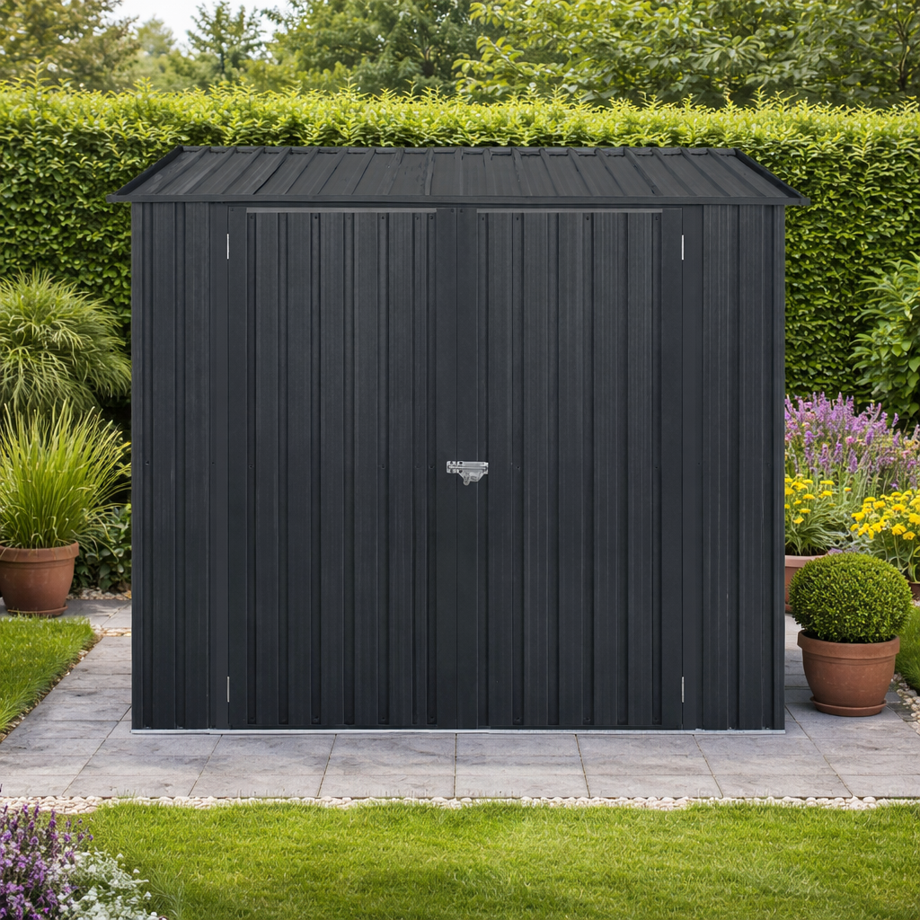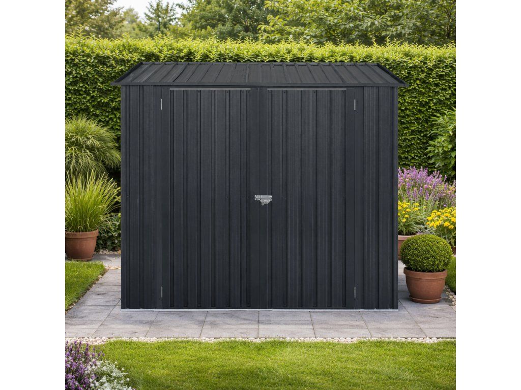 Moderní design s praktickým úložným prostoremKvalitní kovový zahradní domek v elegantní antracitové barvě skvěle zapadne do každé zahrady nebo dvora. S půdorysnou plochou 3,3 m² a rozměry 152 × 217 × 194 cm poskytuje dostatek prostoru pro zahradní náčiní, sekačku, regály i další vybavení. Moderní provedení působí čistě a nadčasově. TIP: Vnitřní prostor si můžete efektivně zorganizovat pomocí polic nebo závěsných držáků na nářadí.