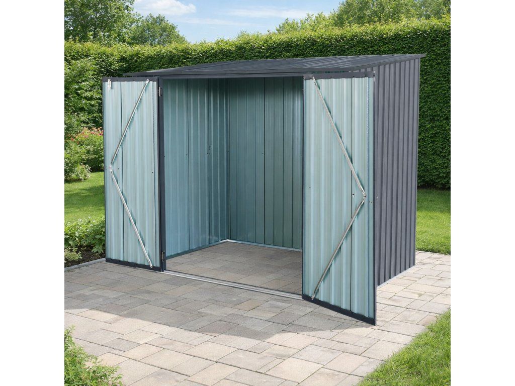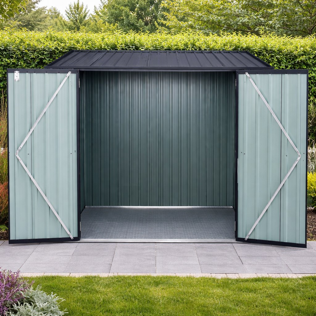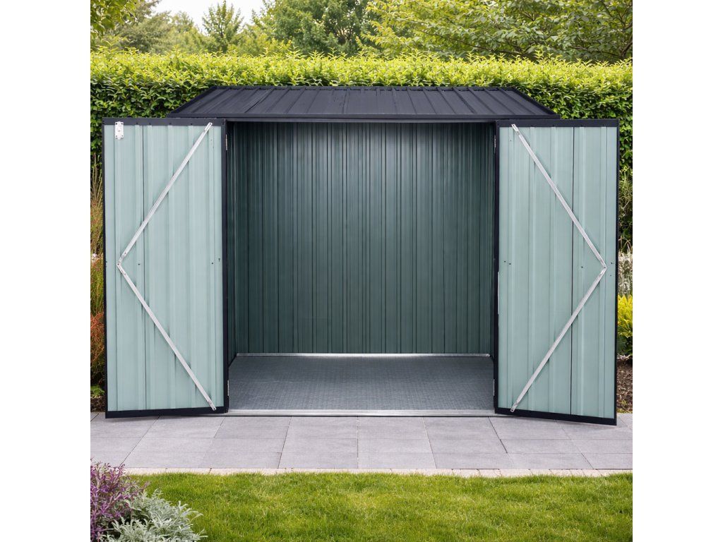 Ochrana proti povětrnostním vlivůmOcelové provedení poskytuje spolehlivou ochranu proti dešti, sněhu, větru i UV záření. Konstrukce je navržena tak, aby odolávala běžným klimatickým podmínkám během celého roku. Pevné stěny chrání uložené vybavení před vlhkostí a nečistotami. TIP: Pro maximální stabilitu doporučujeme domek instalovat na pevný a rovný podklad, například betonovou desku nebo dlažbu.