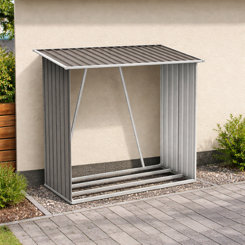 Pevná ocelová konstrukceDřevník je vyroben z kvalitní galvanizované oceli, která je odolná vůči korozi i mechanickému poškození. Součástí balení jsou ocelové výztužné podpěry, které zvyšují stabilitu celé konstrukce. Pevné kovové provedení zajišťuje dlouhou životnost bez nutnosti náročné údržby. TIP: Pro maximální stabilitu doporučujeme instalaci na pevný a rovný podklad (beton, dlažba).