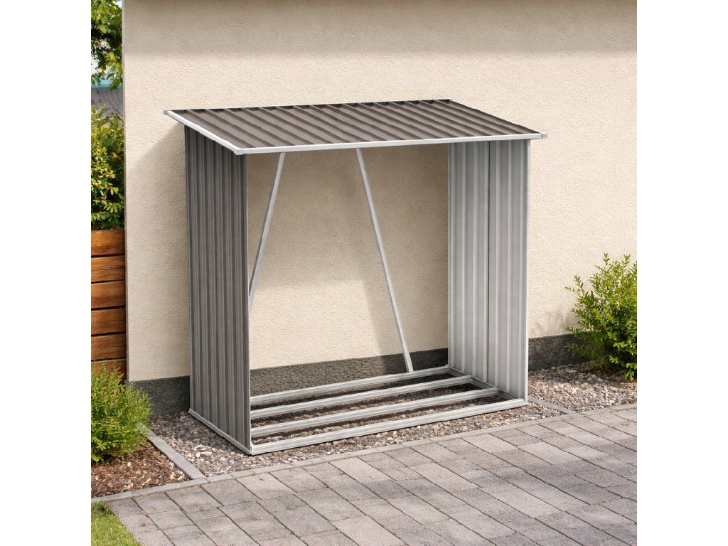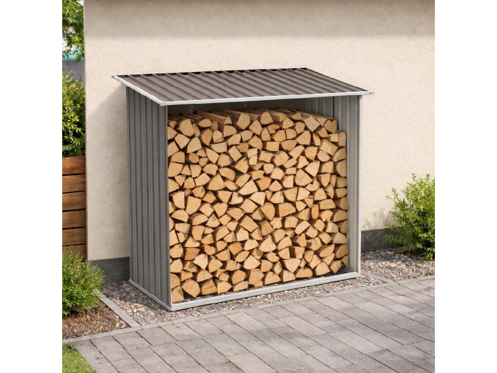 Moderní design a praktické rozměryKompaktní, ale dostatečně prostorný dřevník v šedém provedení snadno zapadne ke každému domu i zahradě. Díky rozměrům 163 × 83 × 154 cm poskytuje úložnou plochu 1,35 m² a objem až cca 2 m³. Šikmá střecha se sklonem (zadní výška 154 cm, přední 142 cm) zajišťuje přirozený odtok vody. TIP: Umístěte dřevník ke zdi domu nebo garáže – zvýšíte stabilitu a zároveň ušetříte místo na zahradě.