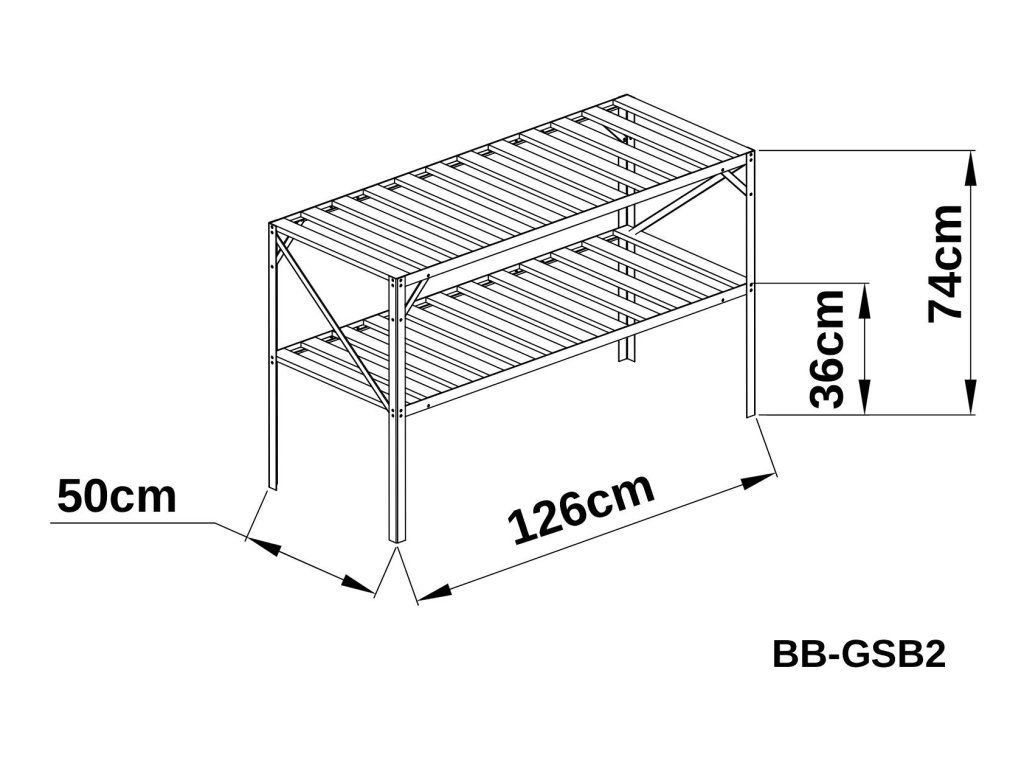 Zahradní regál do skleníku BestBerg BB-GSB2 / 2 police / 126 x 50 x 75 cm / stříbrná