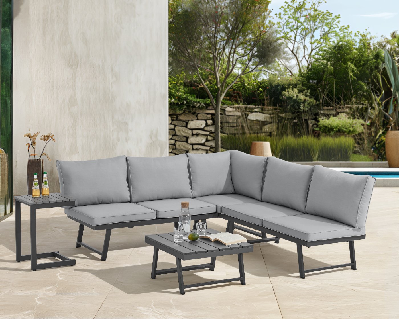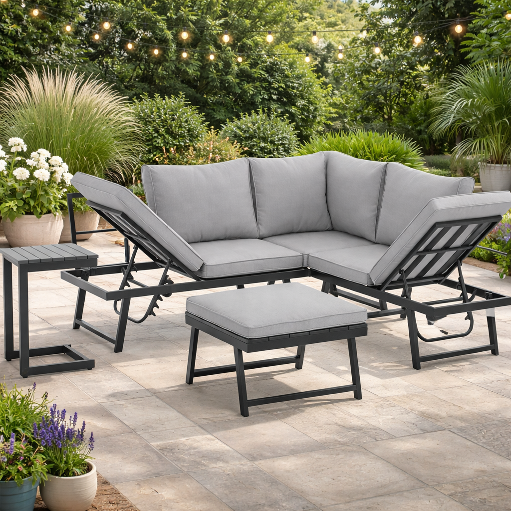 Variabilní řešení pro každý prostorModulová zahradní souprava vám umožní vytvořit přesně takové posezení, jaké potřebujete – od rohové pohovky až po pohodlné lehátko či otevřenou sestavu pro více hostů. Součástí setu je dvoumístná pohovka, rohový díl, hlavní stůl i praktický odkládací stolek. Díky šesti odnímatelným polštářům si snadno upravíte komfort i uspořádání podle aktuální situace. TIP: Vytvořte si během chvíle lehátko na odpočinek nebo rozložte sestavu pro posezení s přáteli – stačí jen změnit uspořádání jednotlivých modulů.