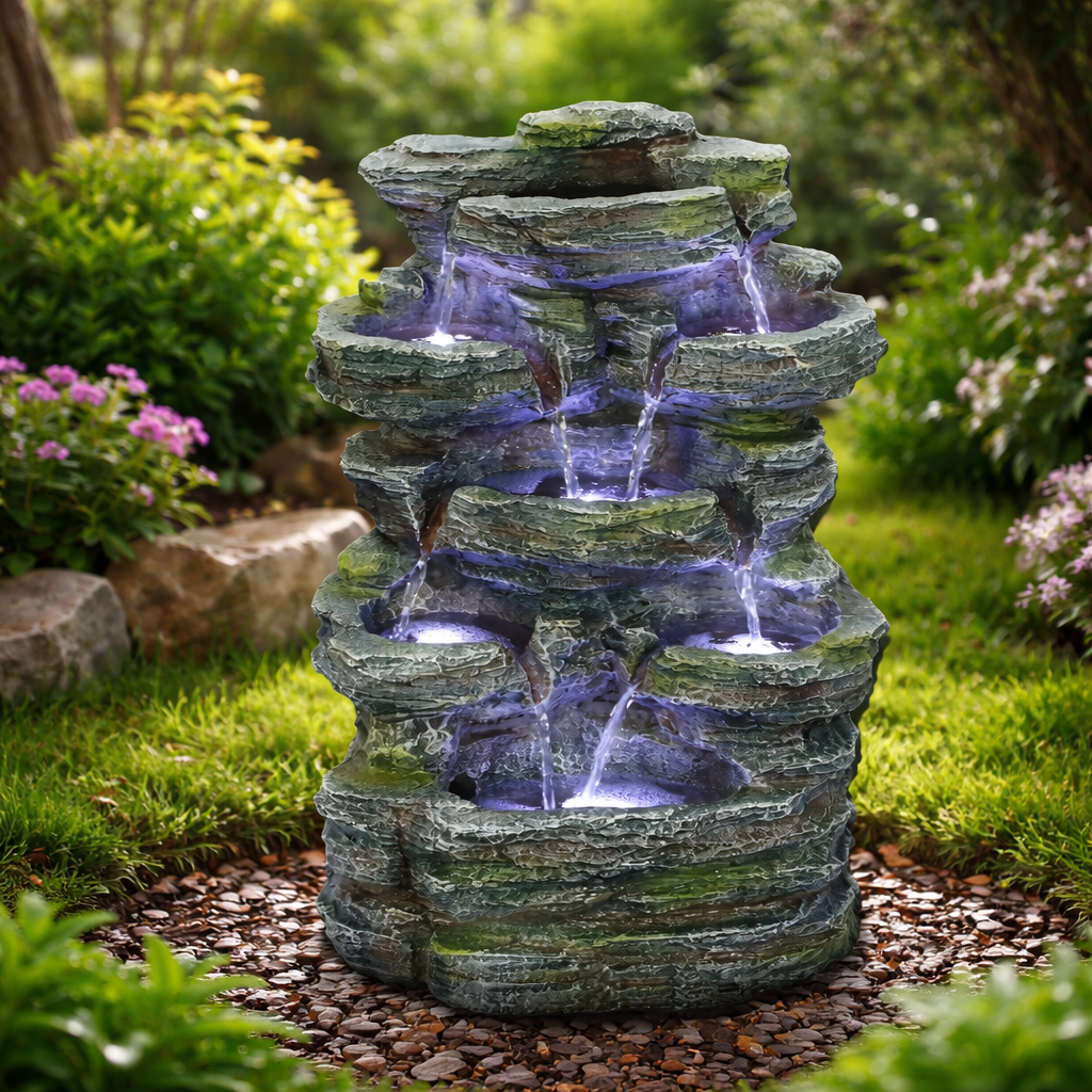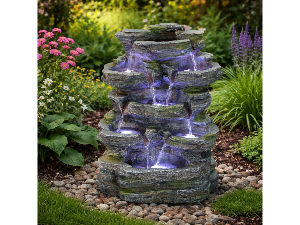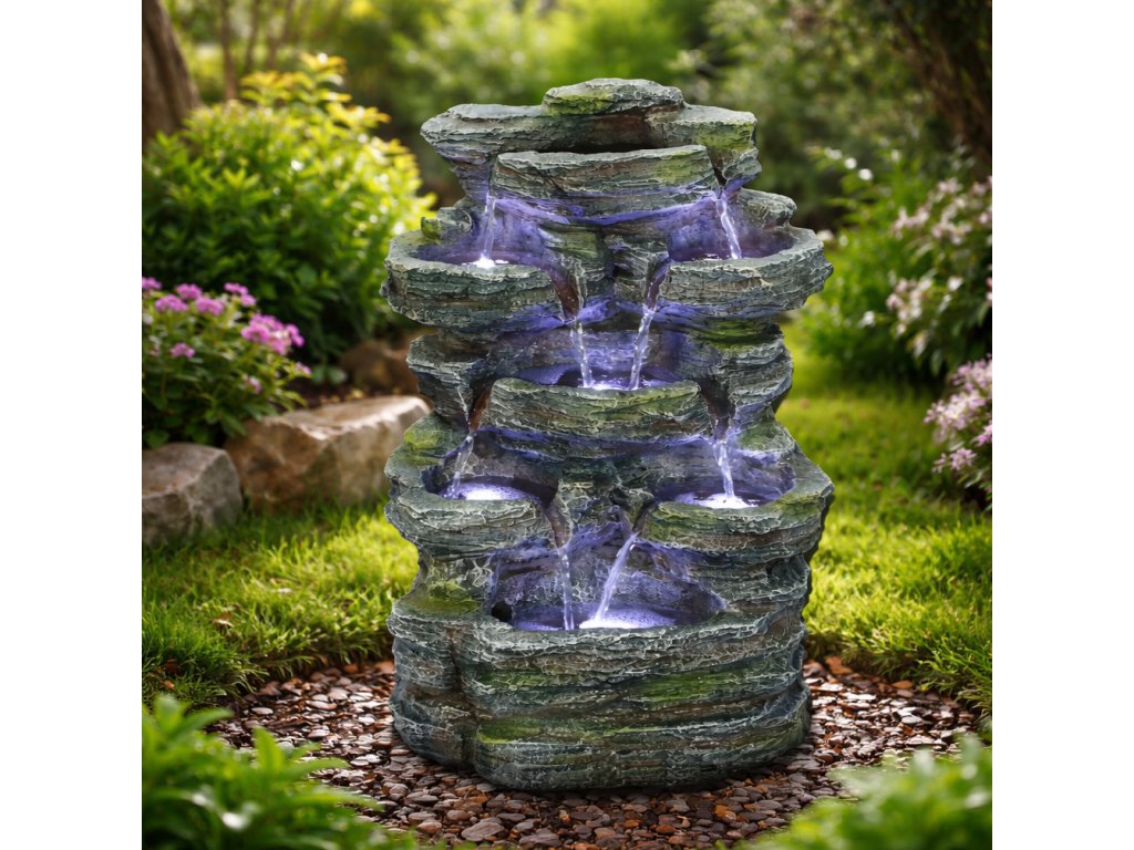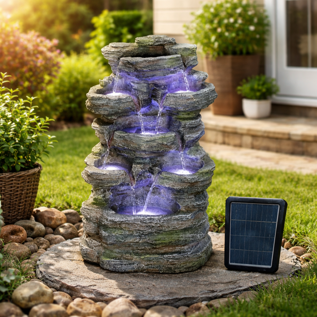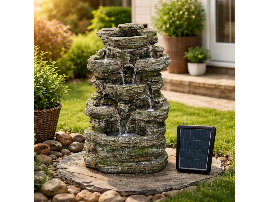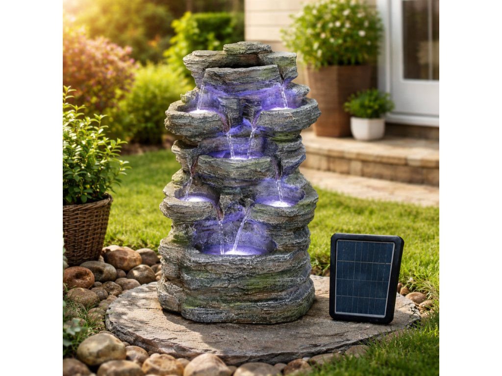 Chcete si ozdobit vaši zahradu, a navíc si při sezení pořádně odpočinout? Pak by vám neměla chybět solární zahradní fontána. Navodí tu správnou relaxační náladu díky příjemným zvukům tekoucí vody a oceníte ji navíc i vizuálně. Motiv skalnatého útvaru v elegantním stylu krásně doplní vaši zahradu. Ve večerních hodinách si také užijete podsvícení LED světýlky.
