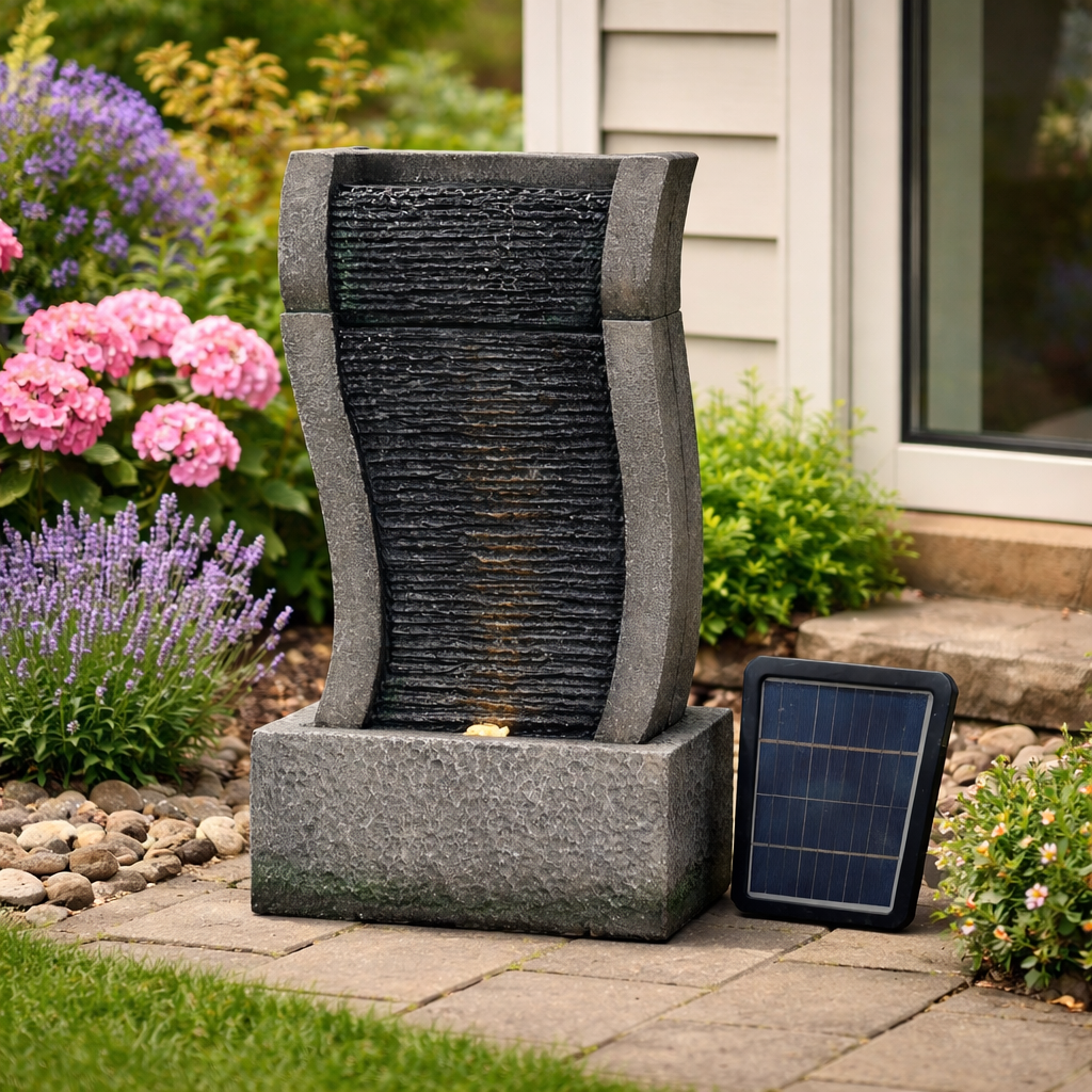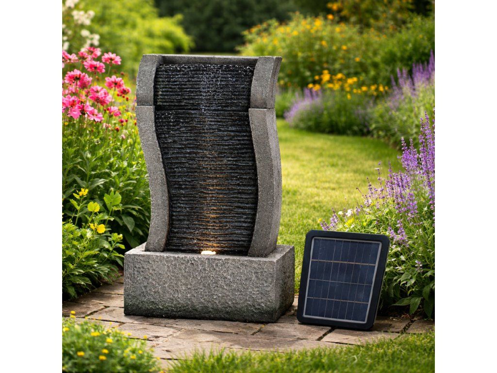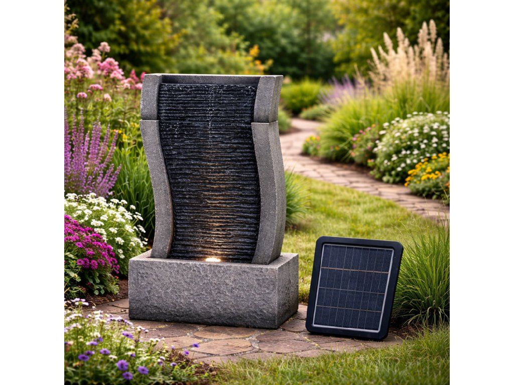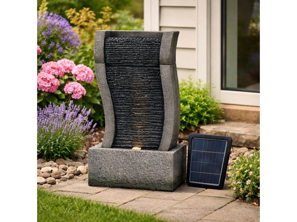 Chcete si ozdobit vaši zahradu, a navíc si při sezení pořádně odpočinout? Pak by vám neměla chybět solární zahradní fontána. Navodí tu správnou relaxační náladu díky příjemným zvukům tekoucí vody a oceníte ji navíc i vizuálně. Motiv kamenné stěny v elegantním stylu krásně doplní vaši zahradu. Ve večerních hodinách si také užijete podsvícení LED světýlky.