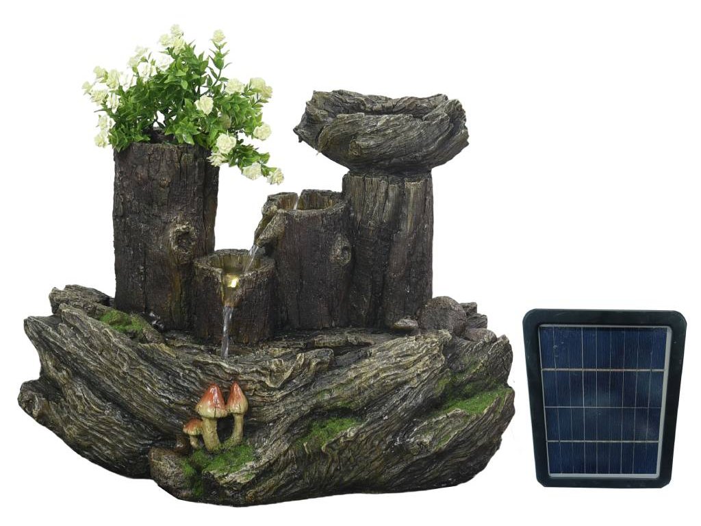 Chcete si ozdobit vaši zahradu, a navíc si při sezení pořádně odpočinout? Pak by vám neměla chybět solární zahradní fontána. Navodí tu správnou relaxační náladu díky příjemným zvukům tekoucí vody a oceníte ji navíc i vizuálně. Motiv v přírodním stylu krásně doplní vaši zahradu. Ve večerních hodinách si také užijete podsvícení LED světýlky.