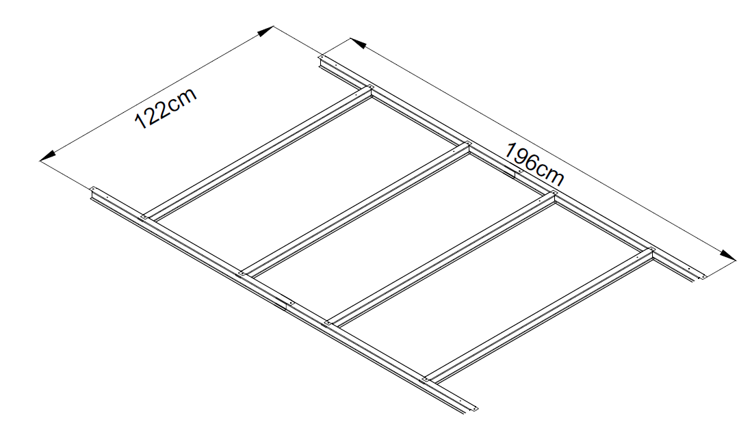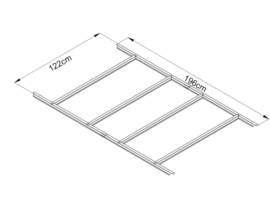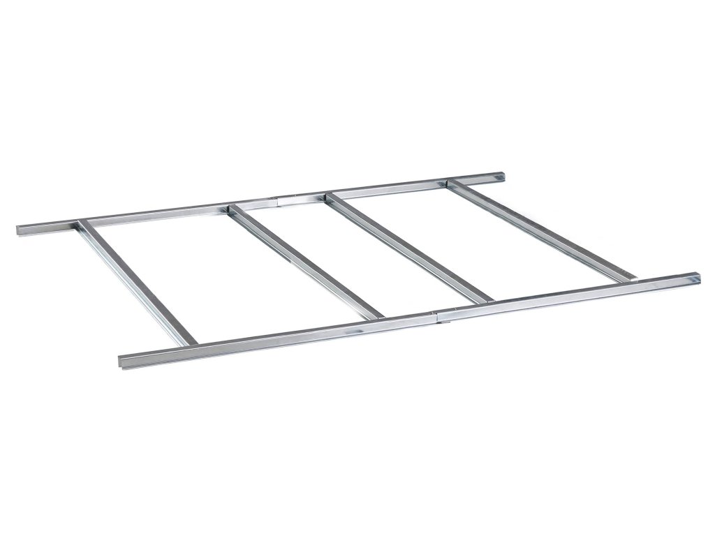 Pevná a stabilní konstrukceKvalitní kovová základna je navržena tak, aby poskytovala zahradnímu domku maximální oporu a stabilitu. Galvanizovaný ocelový rám o tloušťce 0,6 mm zajišťuje vysokou pevnost a odolnost vůči deformacím. Konstrukce pomáhá rovnoměrně rozložit hmotnost domku a přispívá k jeho dlouhodobé stabilitě. TIP: Pro ještě vyšší pevnost doporučujeme základnu doplnit o podlahu z OSB desek nebo dřevěných prken.