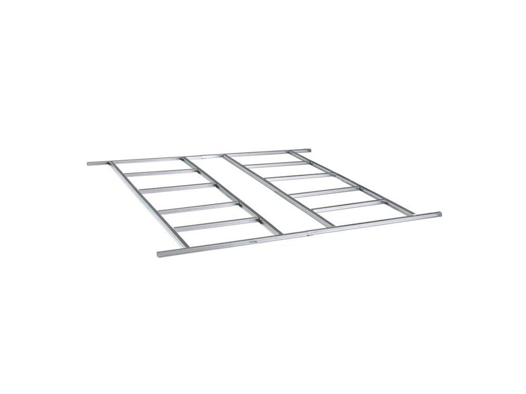 Pevná a stabilní konstrukceKvalitní kovová základna je navržena tak, aby poskytovala zahradnímu domku maximální oporu a stabilitu. Galvanizovaný ocelový rám o tloušťce 0,6 mm zajišťuje vysokou pevnost a odolnost vůči deformacím. Konstrukce pomáhá rovnoměrně rozložit hmotnost domku a přispívá k jeho dlouhodobé stabilitě. TIP: Pro ještě vyšší pevnost doporučujeme základnu doplnit o podlahu z OSB desek nebo dřevěných prken.